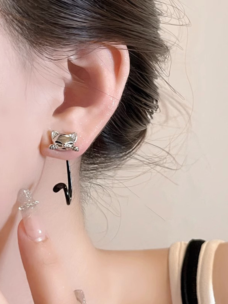 Lovely Cat Rhinestone Studded Earrings