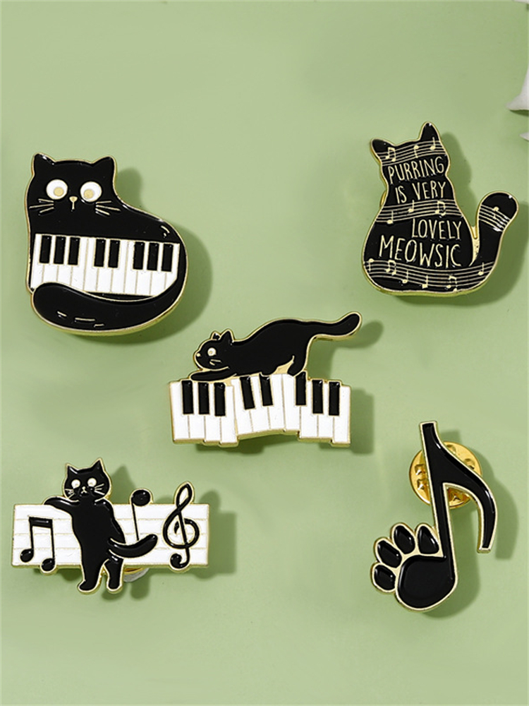Lovely Black Cat Music Note Brooch