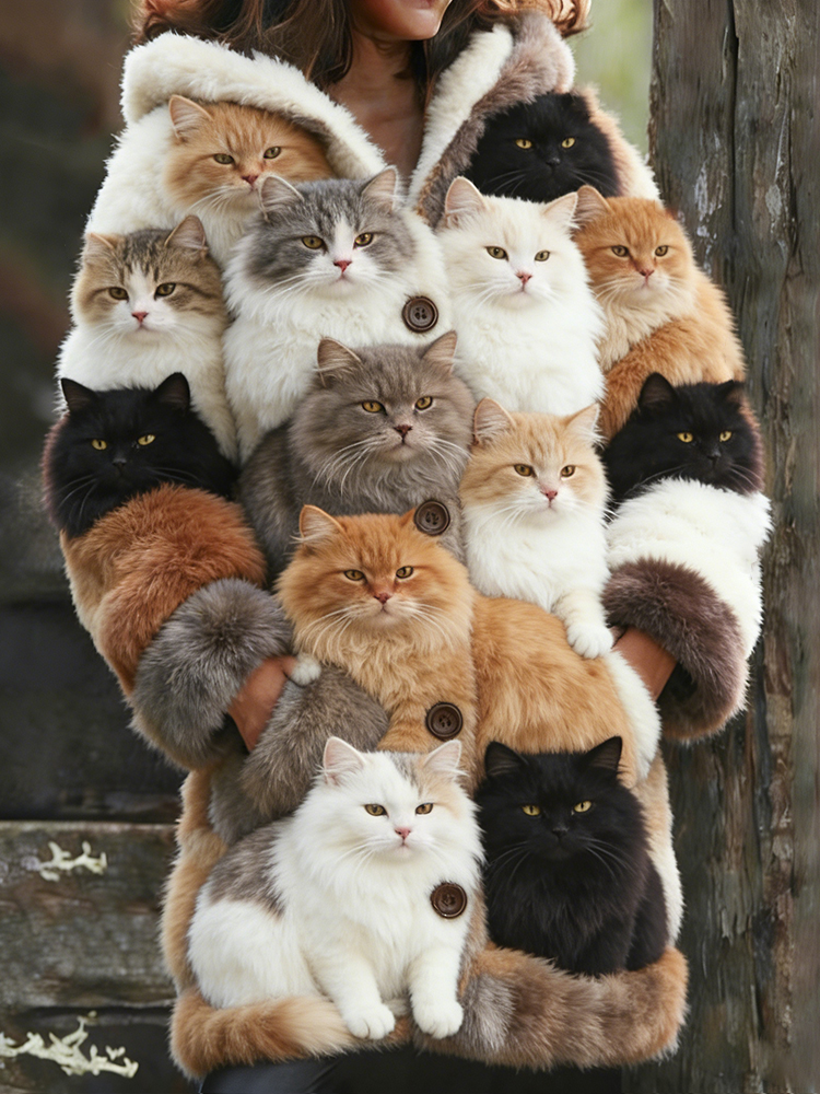 Probe Cat Fleece Hooded Cardigan Long Sweater