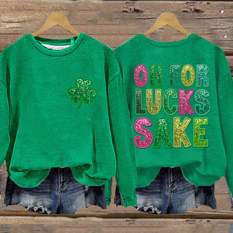 St. Patrick's Funny Oh For Lucks Sake Clover Printed Sweatshirt