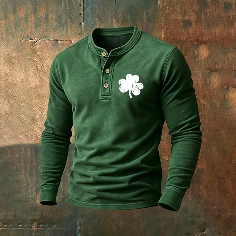 Men's Vintage St. Patrick's Day Printed Henley Shirt