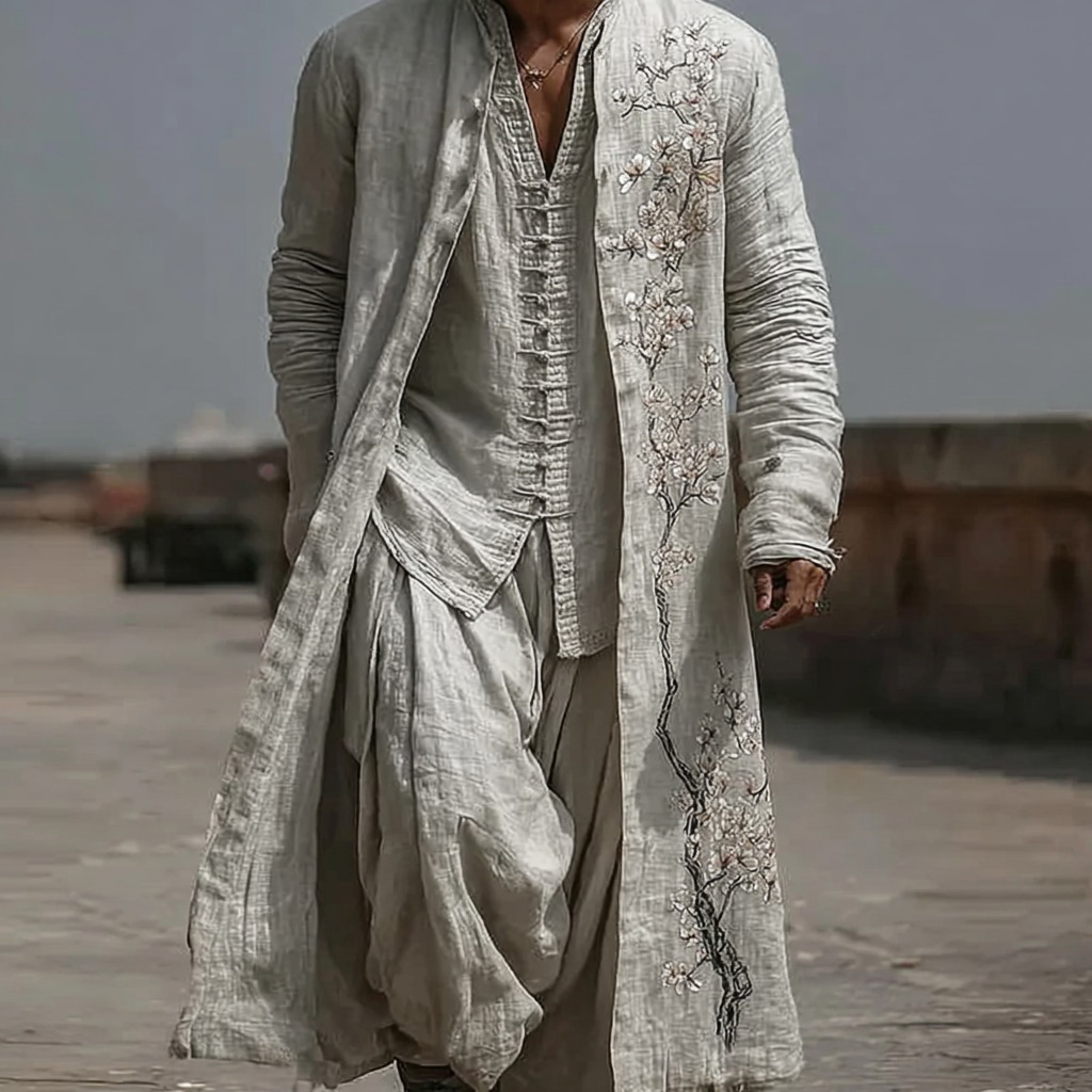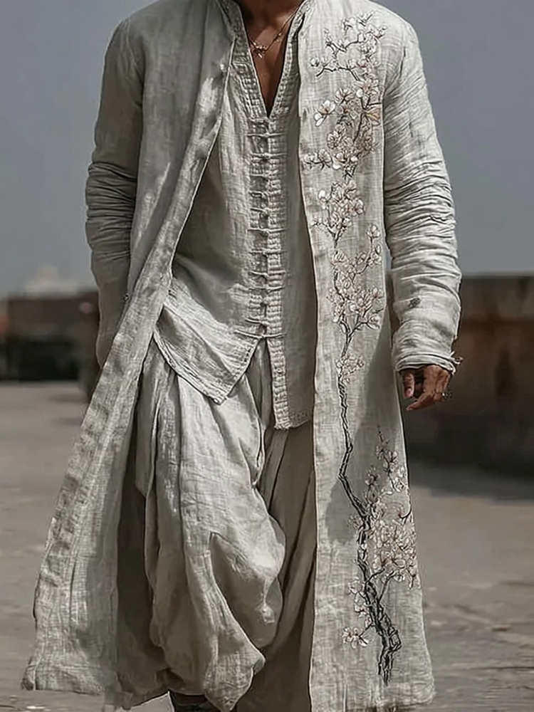 Men's Japanese-style Cherry Blossom Art Long Kimono