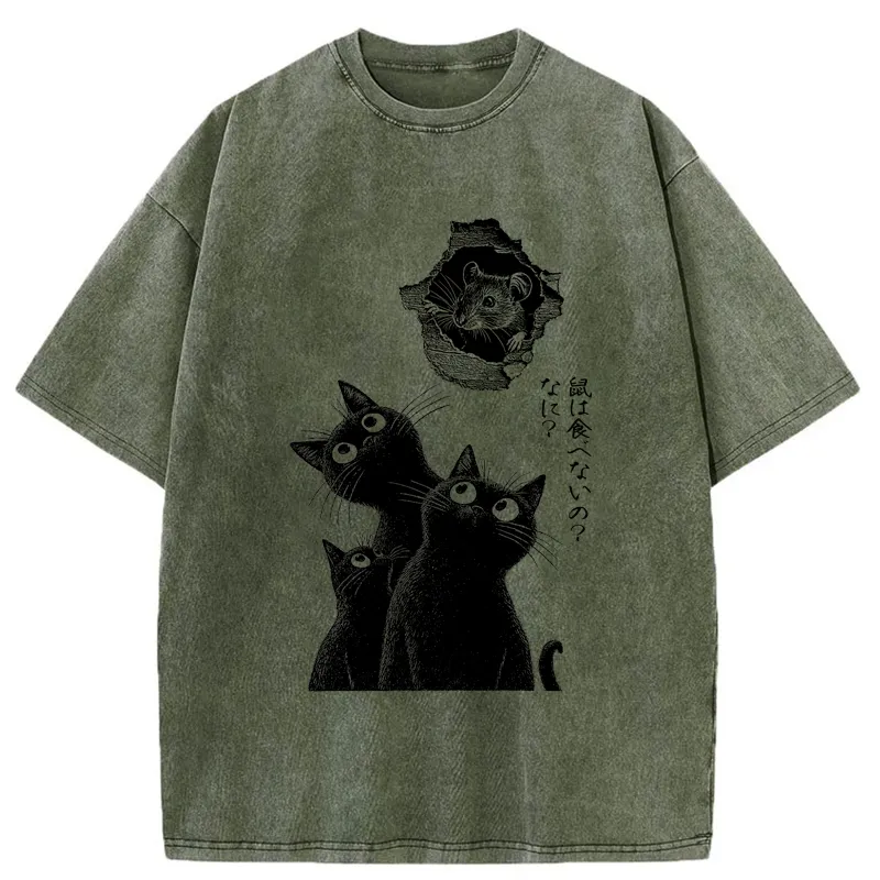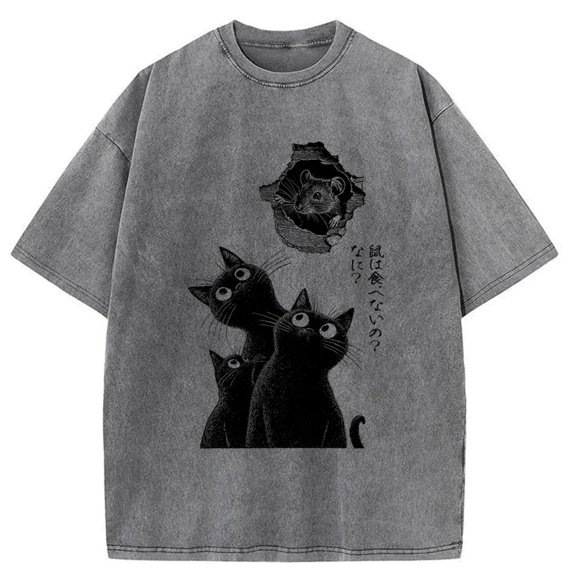 Cats And The Curious Mouse Washed T-shirt