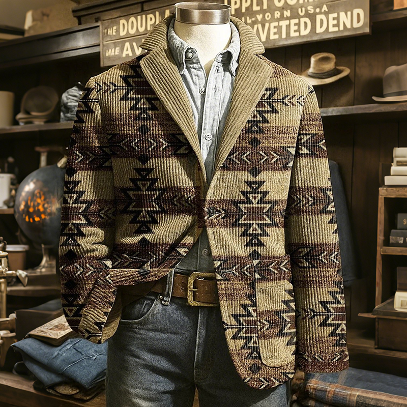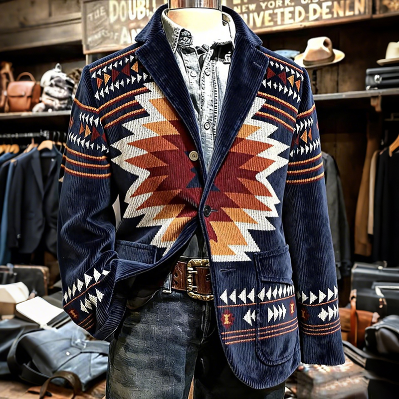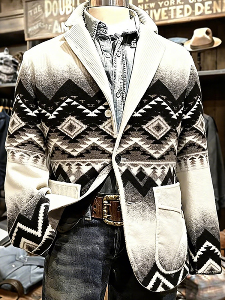 Men's Retro Americana Geometric Patterns Graphic Corduroy Blazer