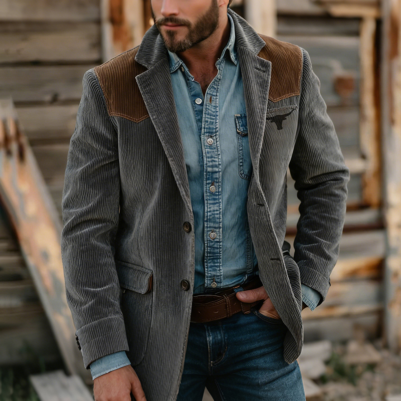 Men's Casual Retro Western-style Corduroy Blazer