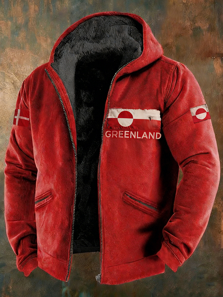 Men's Retro Greenland Not For Sale Print Zipper Casual Jacket