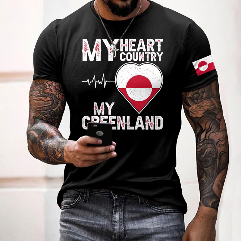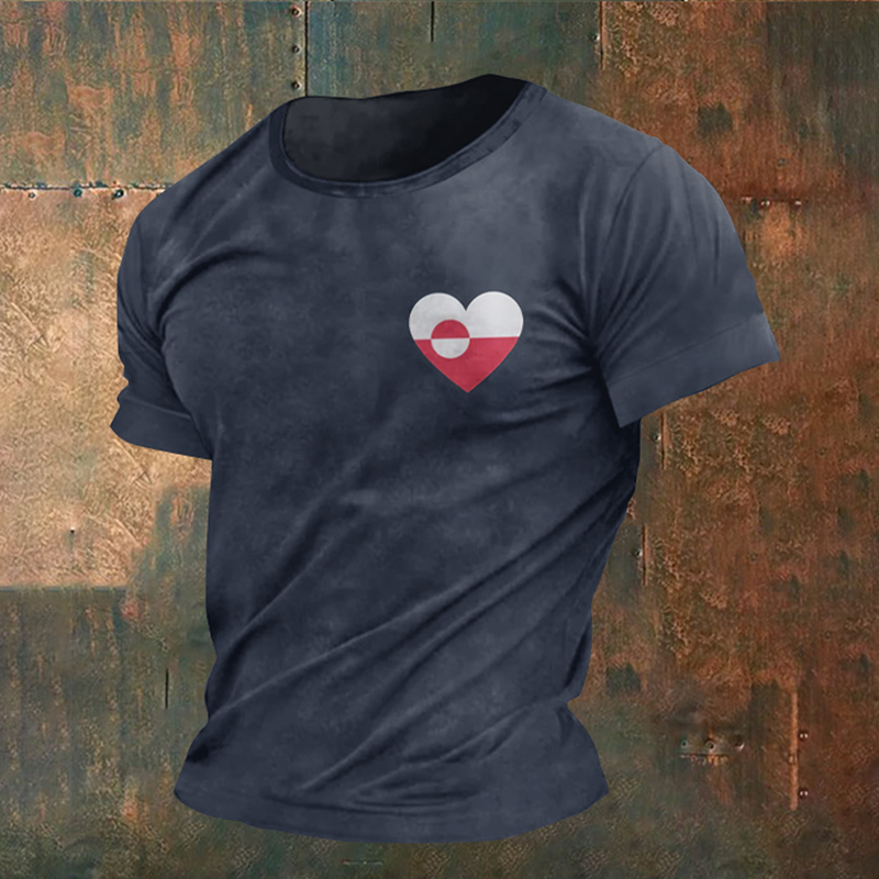 Men's Heart Greenland Flag Print Short Sleeve Casual T-shirt