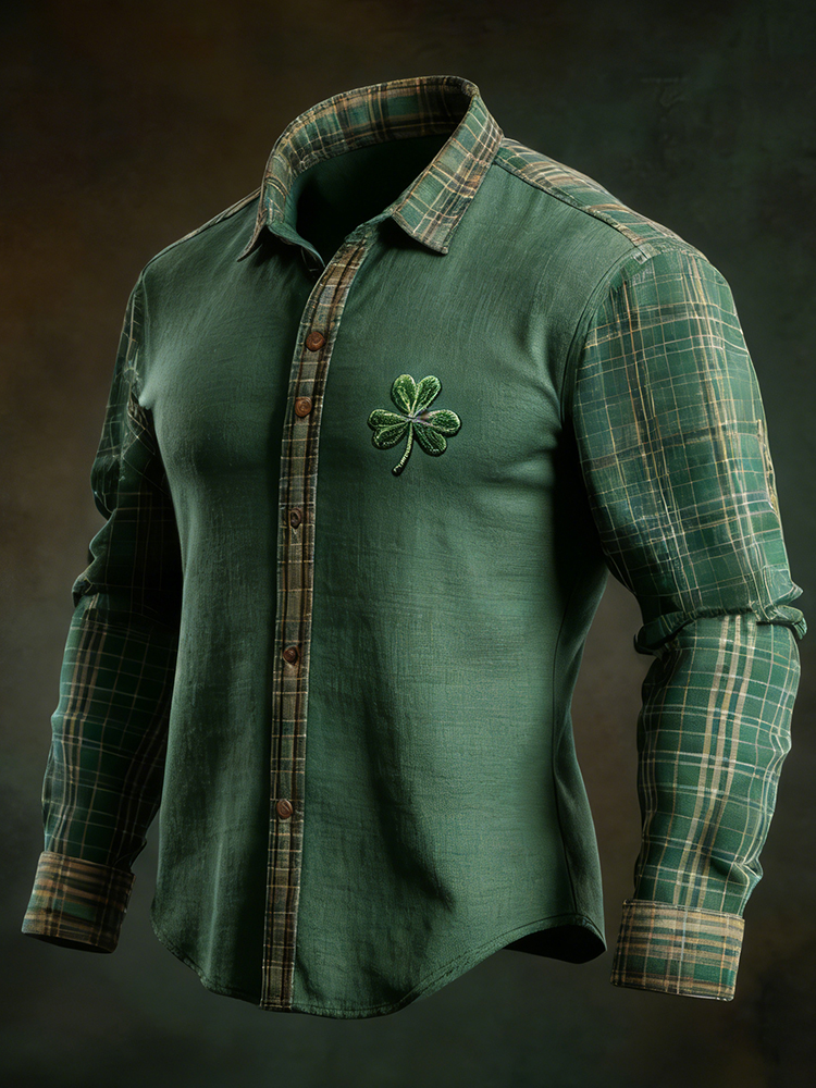 Men's St. Patrick's Day Shamrock Plaid Print Shirt