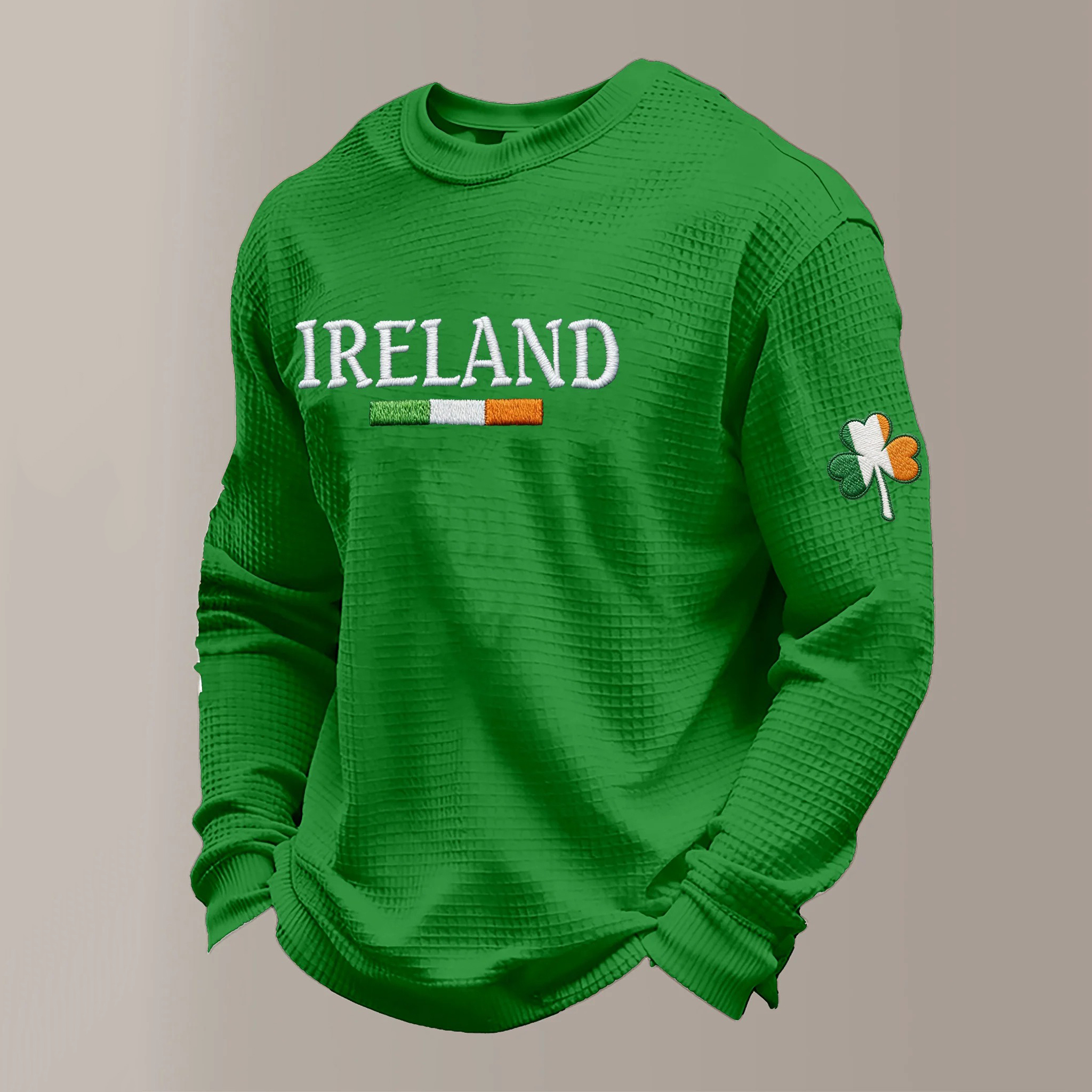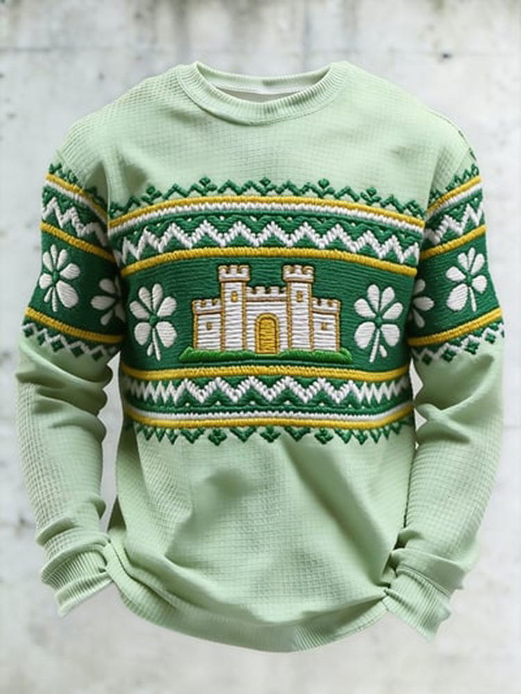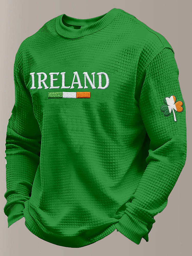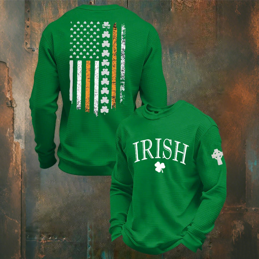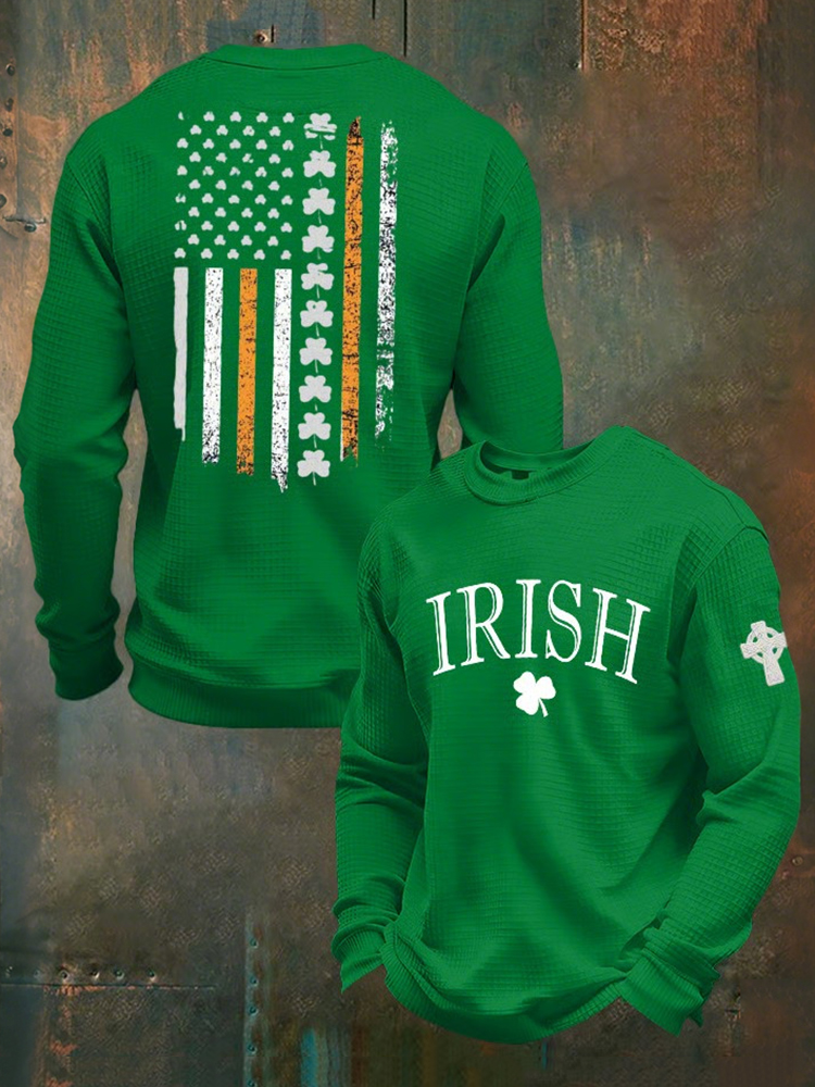 Men's St Patrick's Day Shamrock Print Waffle Sweatshirt