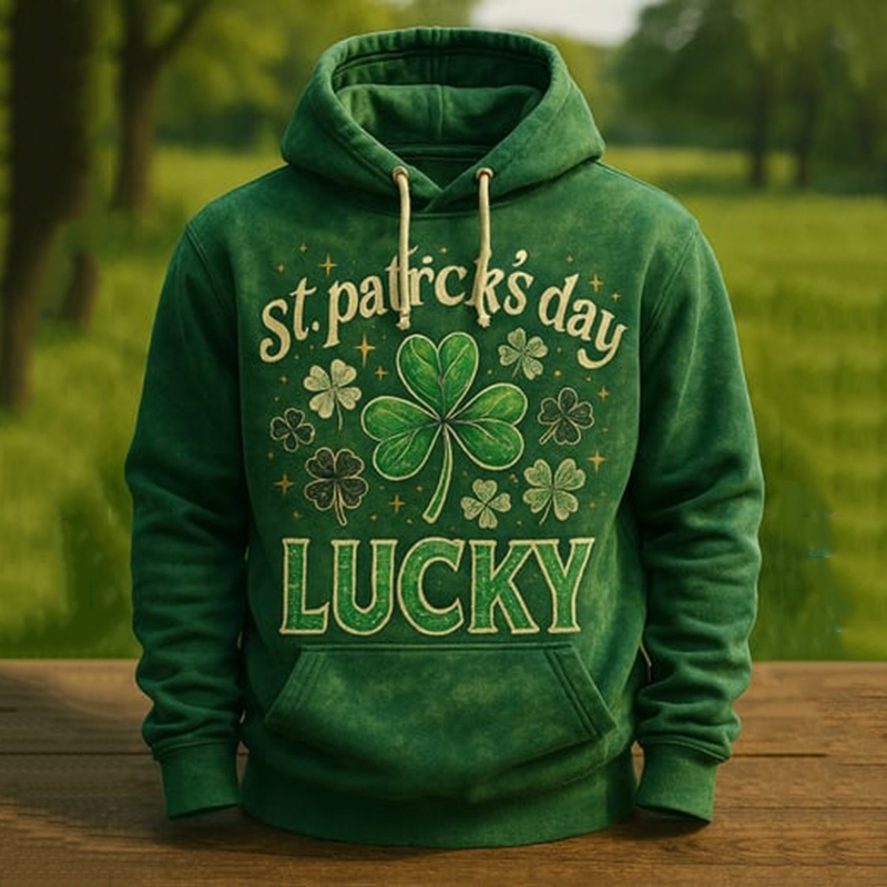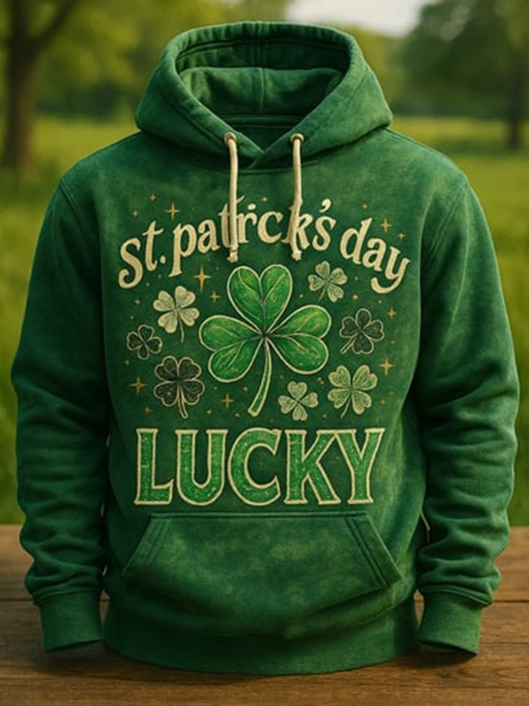 Men's Vintage St. Patrick's Day Shamrock Print Hoodie