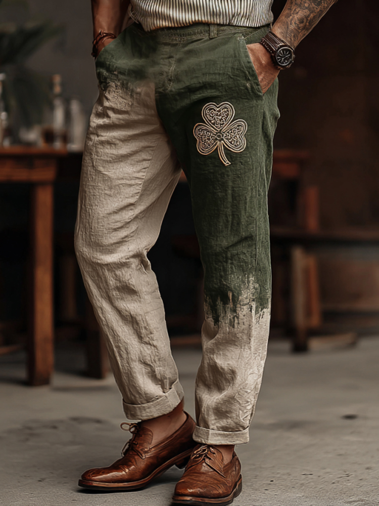 Men's St. Patrick's Day Shamrock In Gradient Art Loose And Comfortable Cotton And Linen Pants