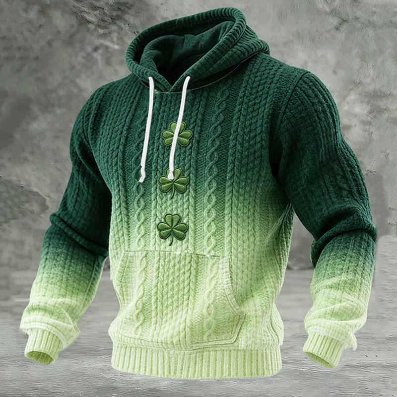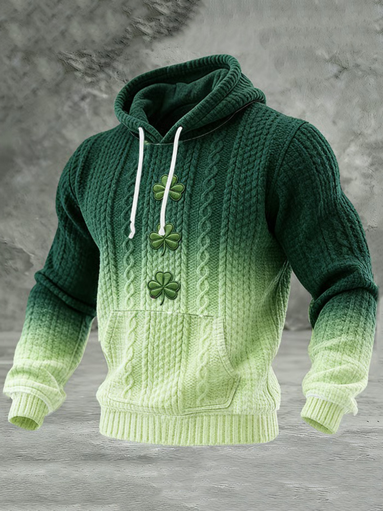 Men's St. Patrick's Day Shamrock Gradient Print Casual Hooded Sweater