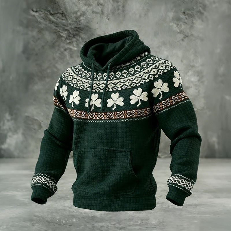 Men's St. Patrick's Day Shamrock Print Waffle Casual Hoodie