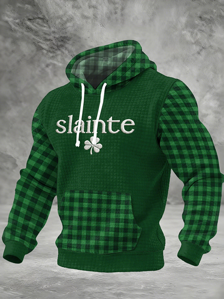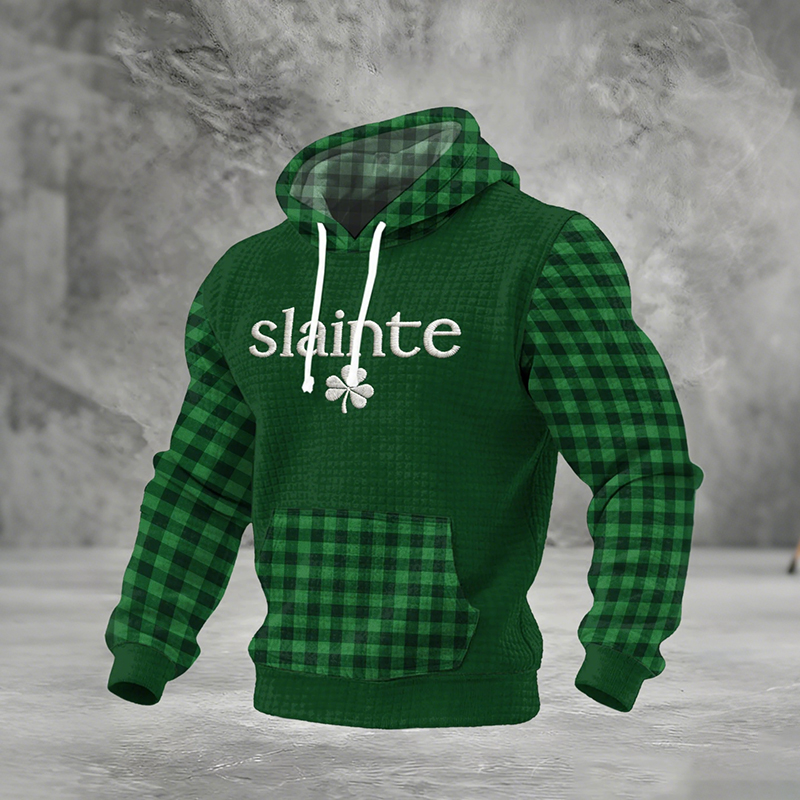 Men's St. Patrick's Day Shamrock Plaid Casual Waffle Hoodie