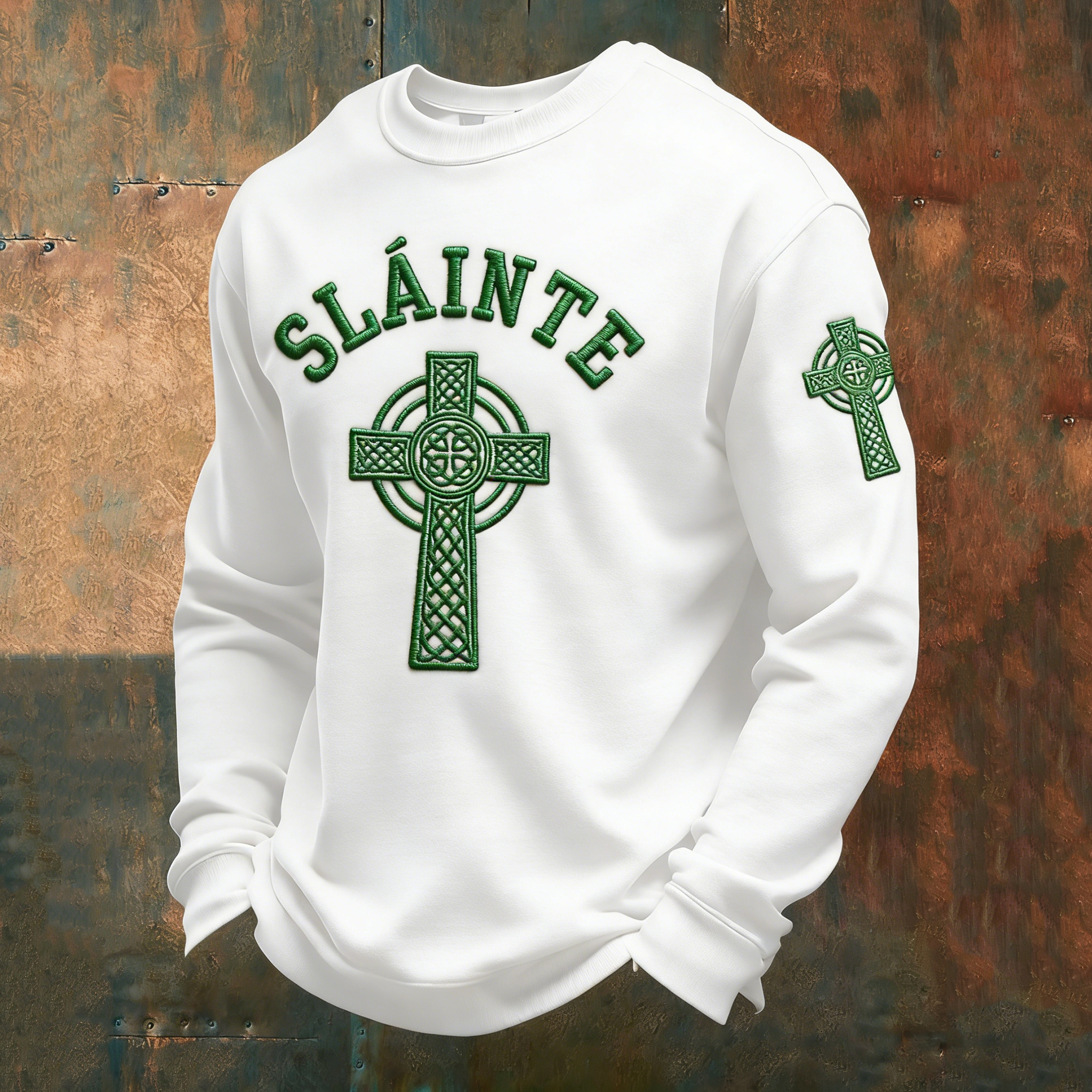St. Patrick's Day Irish Celtic Knot Shamrock Patch Print Sweater