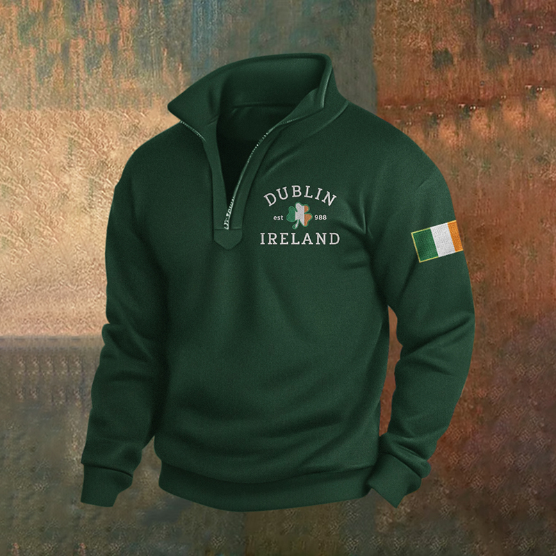 Men's St. Patrick's Day Print Casual Zipper Sweatshirt
