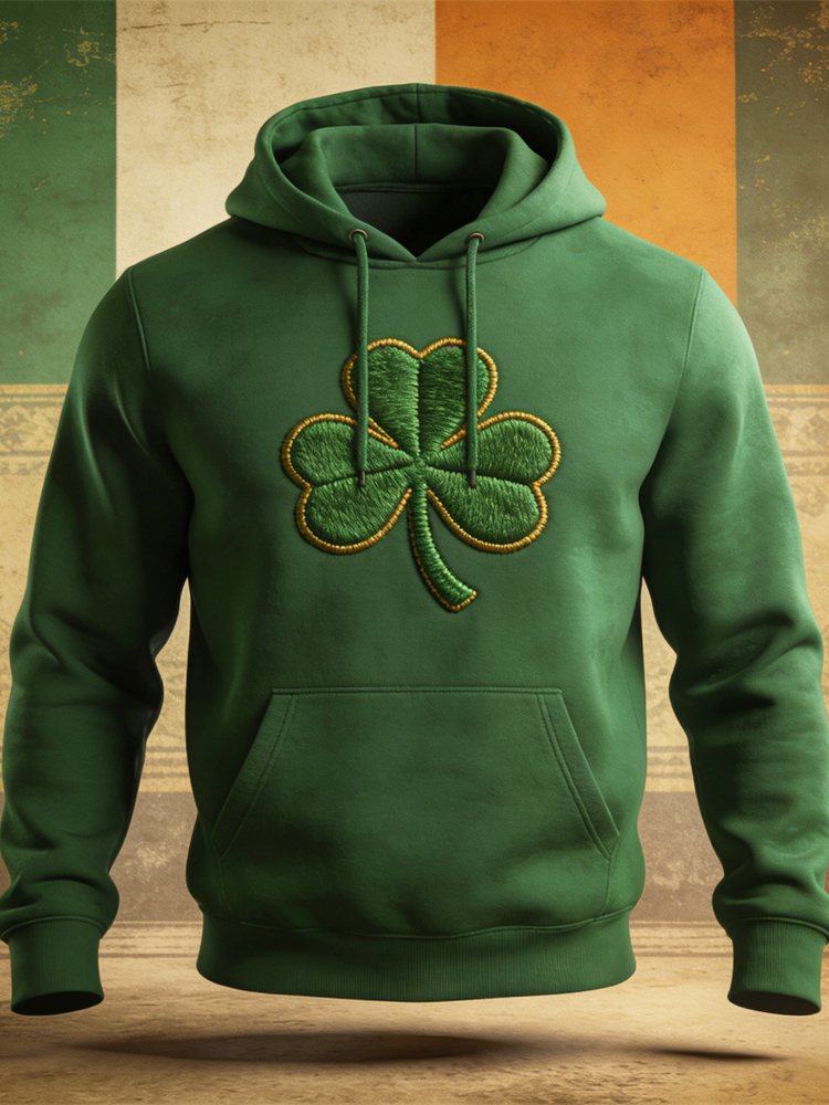 St. Patrick Embroidered Shamrock Pattern Men's Hooded Sweatshirt