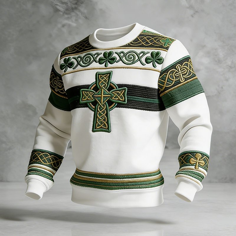Men's Celtic Crucifix Clover Art Print Casual Sweatshirt