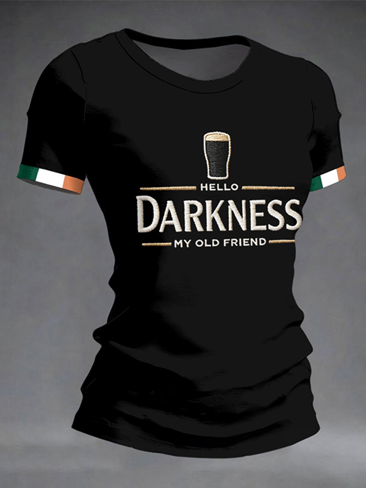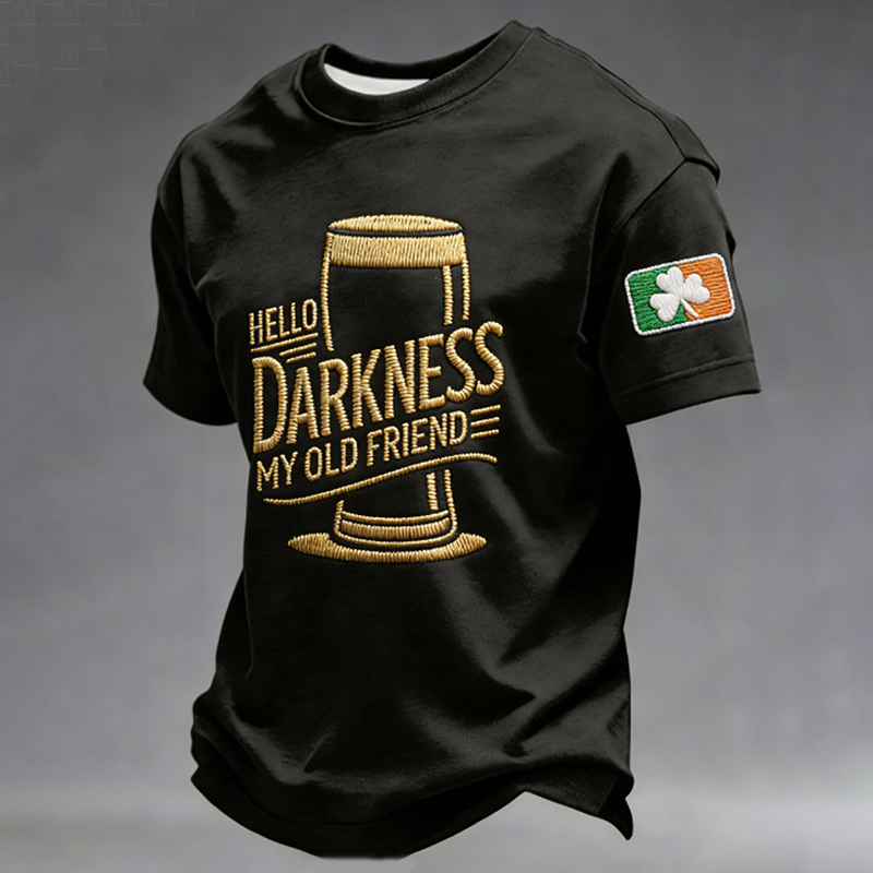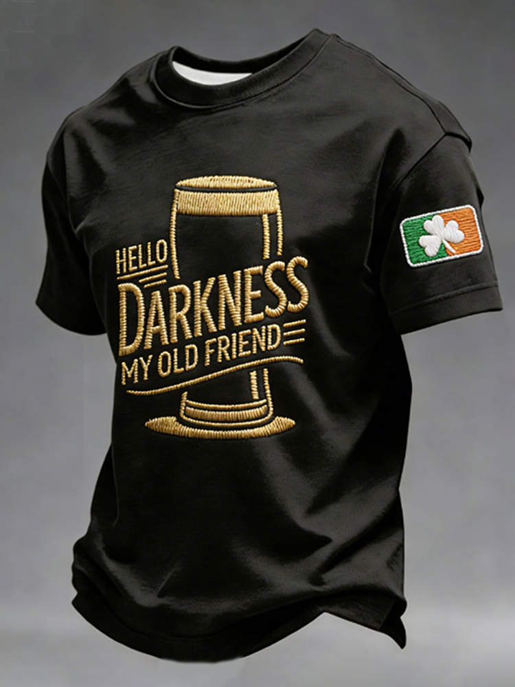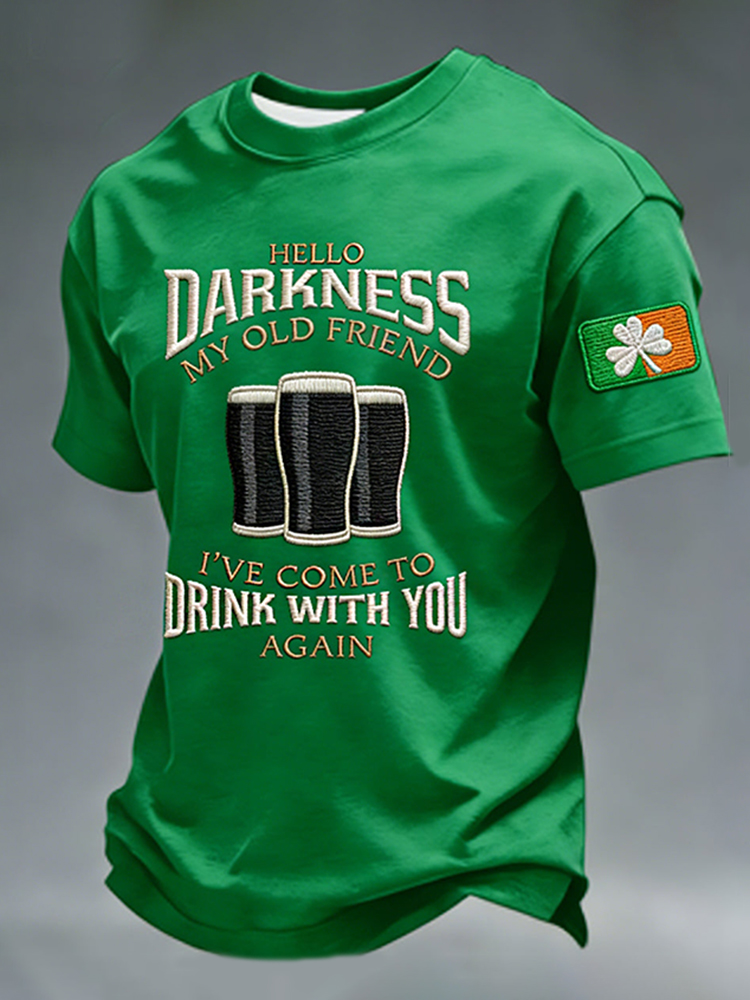 Men's St. Patrick's Day Hello Darkness My Old Friend Pattern Crew Neck Short Sleeve T-shirt