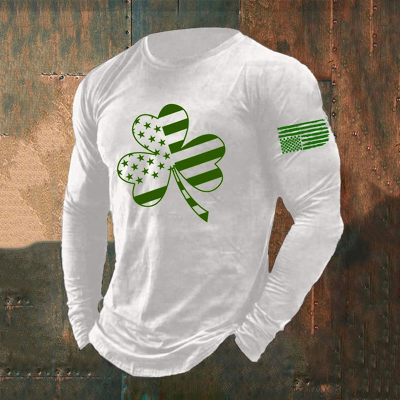 Men's St. Patrick's Day Shamrock Print Long Sleeve T-Shirt