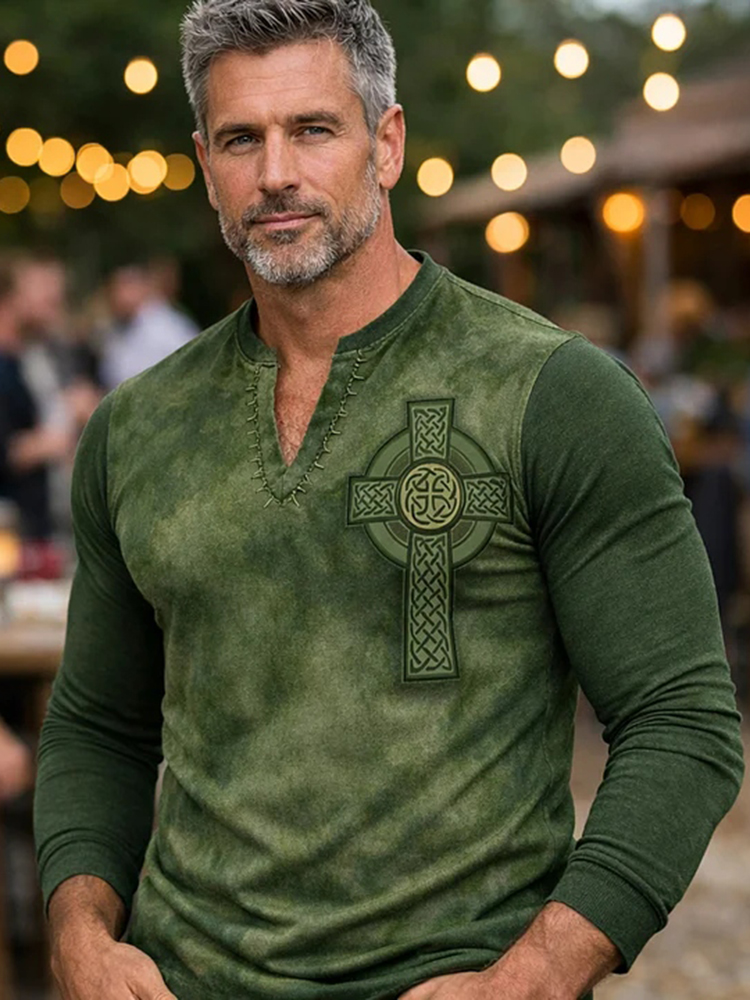 Men's Celtic Cross Print Long Sleeve T-shirt