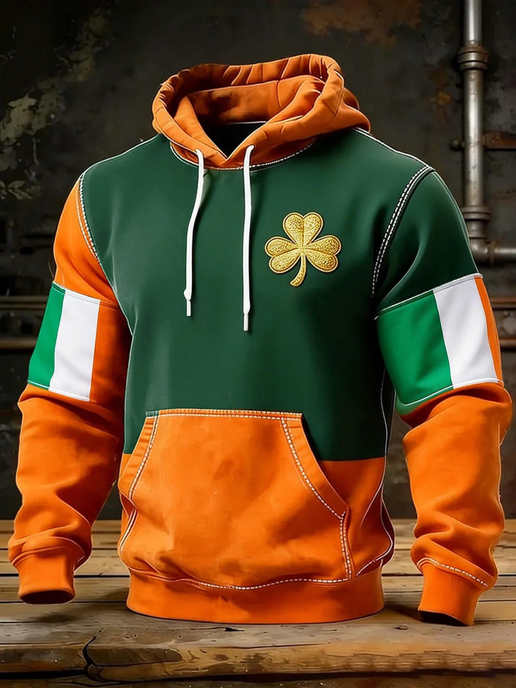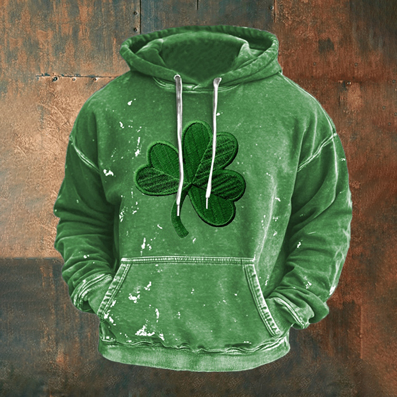 Men's Retro St. Patrick's Day Shamrock Print Casual Hoodie