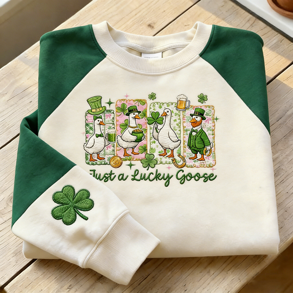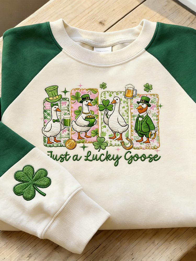 Saint Patrick's Day Fun Goose Pattern Casual Round Neck Sweatshirt