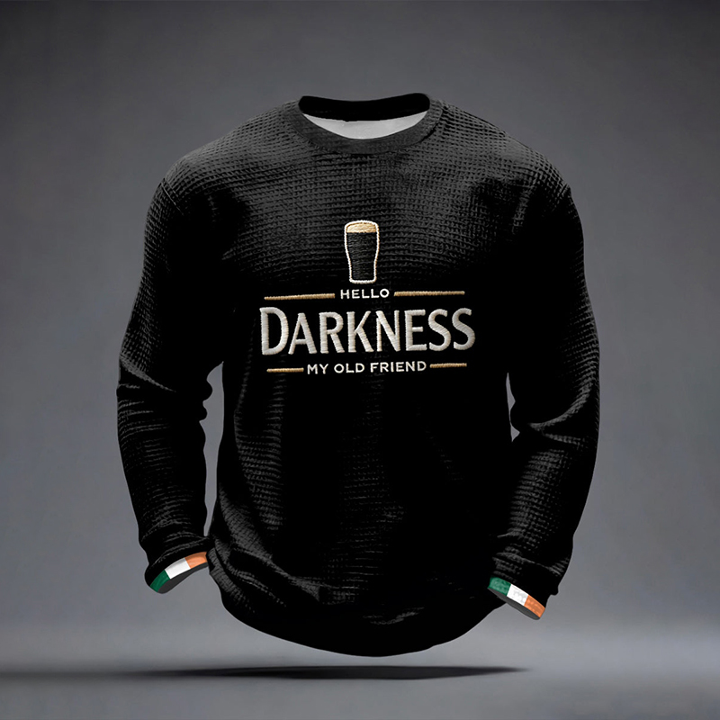 Men's St. Patrick's Day Hello Darkness My Old Friend Waffle Long Sleeve Sweatshirt