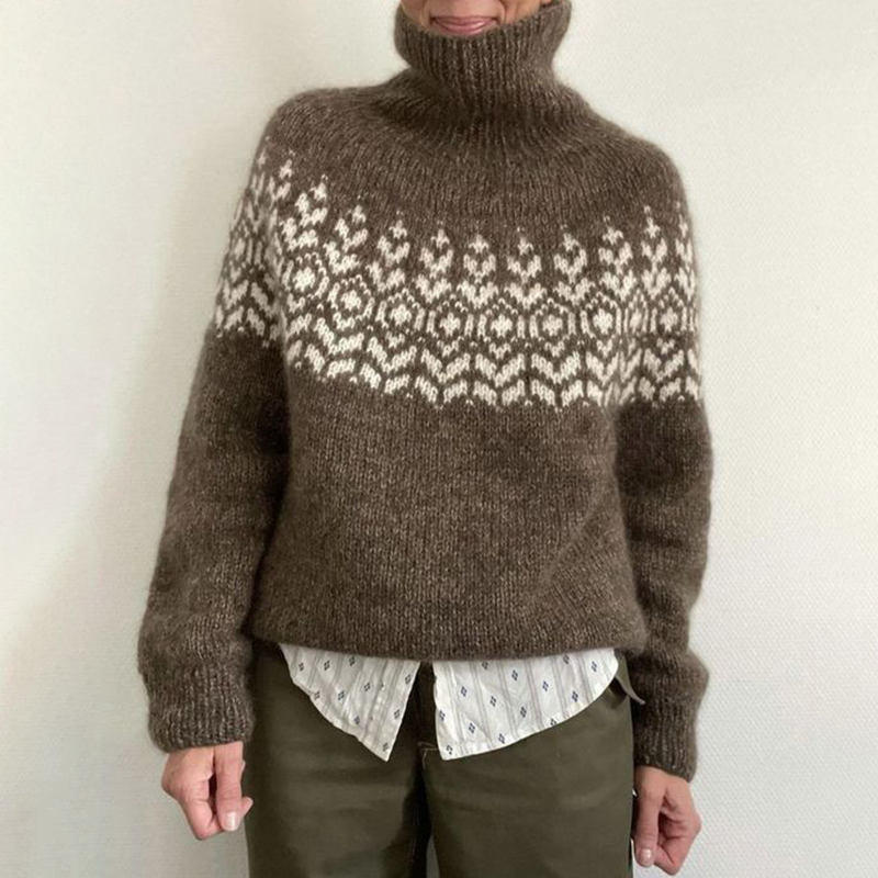Vintage Geometric Print Turtleneck Sweater