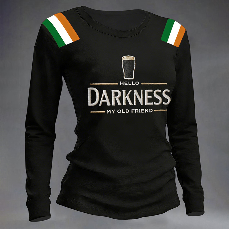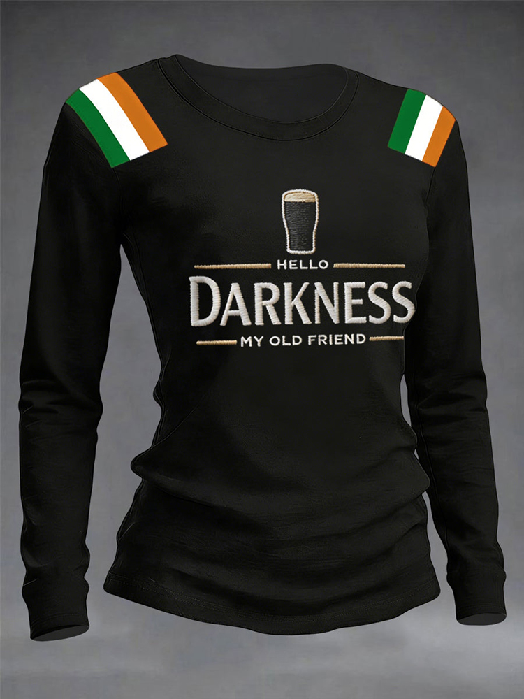 Women's Hello Darkness My Old Friend Print Round Neck Long Sleeve T-shirt