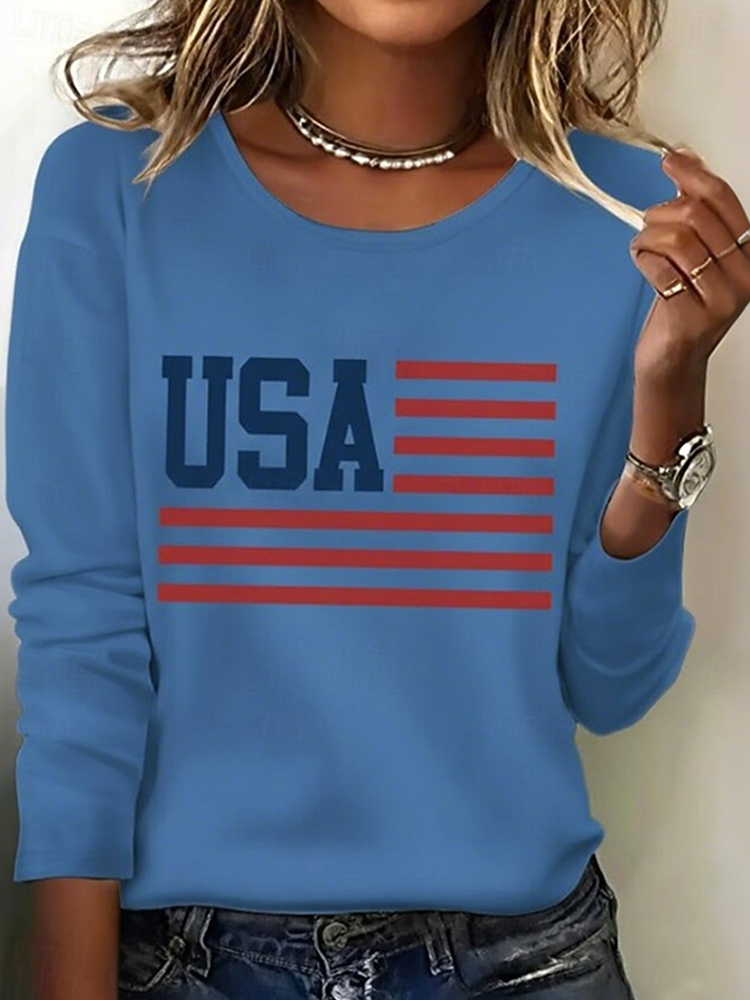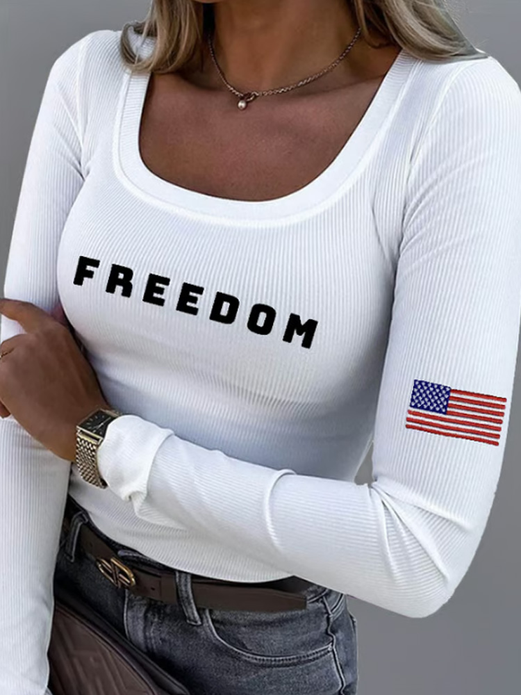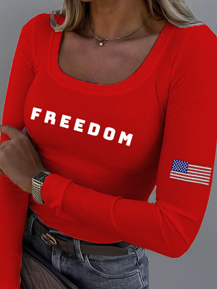 Women's Freedom American Flag Print Fabric Long Sleeve T-shirt