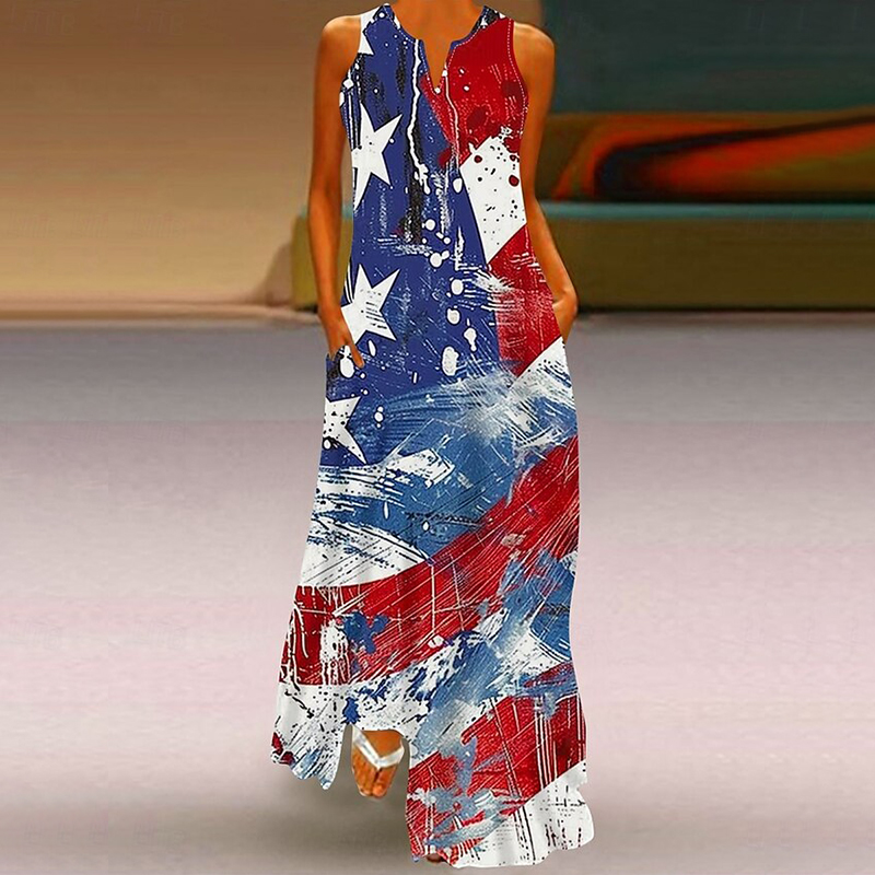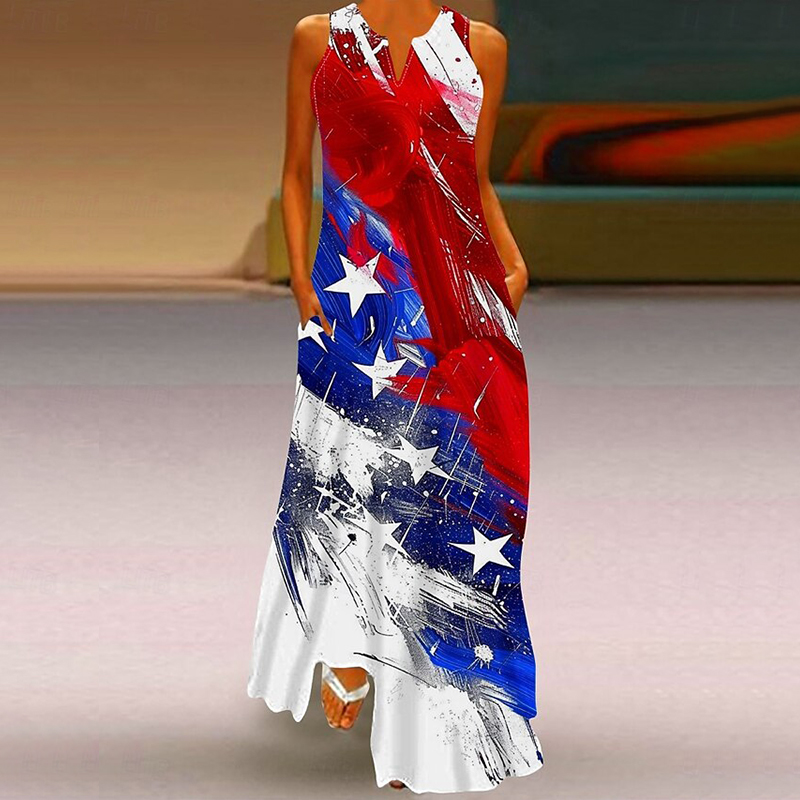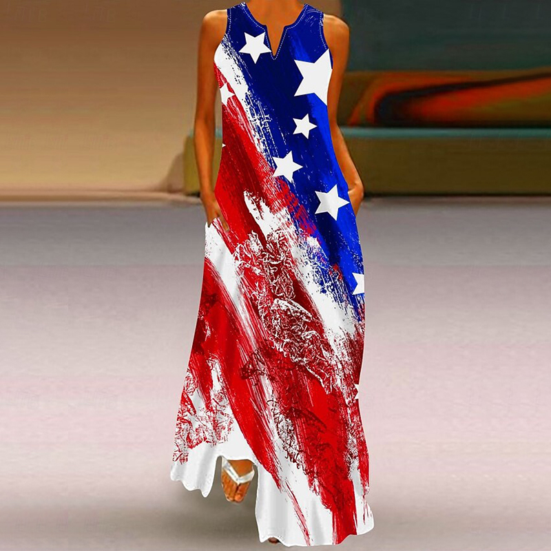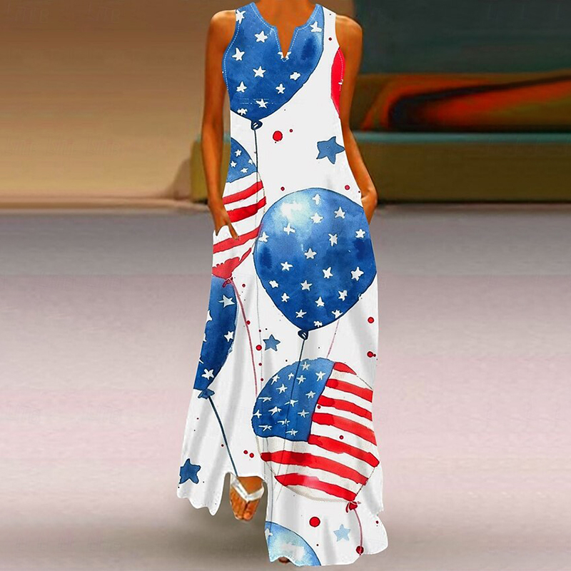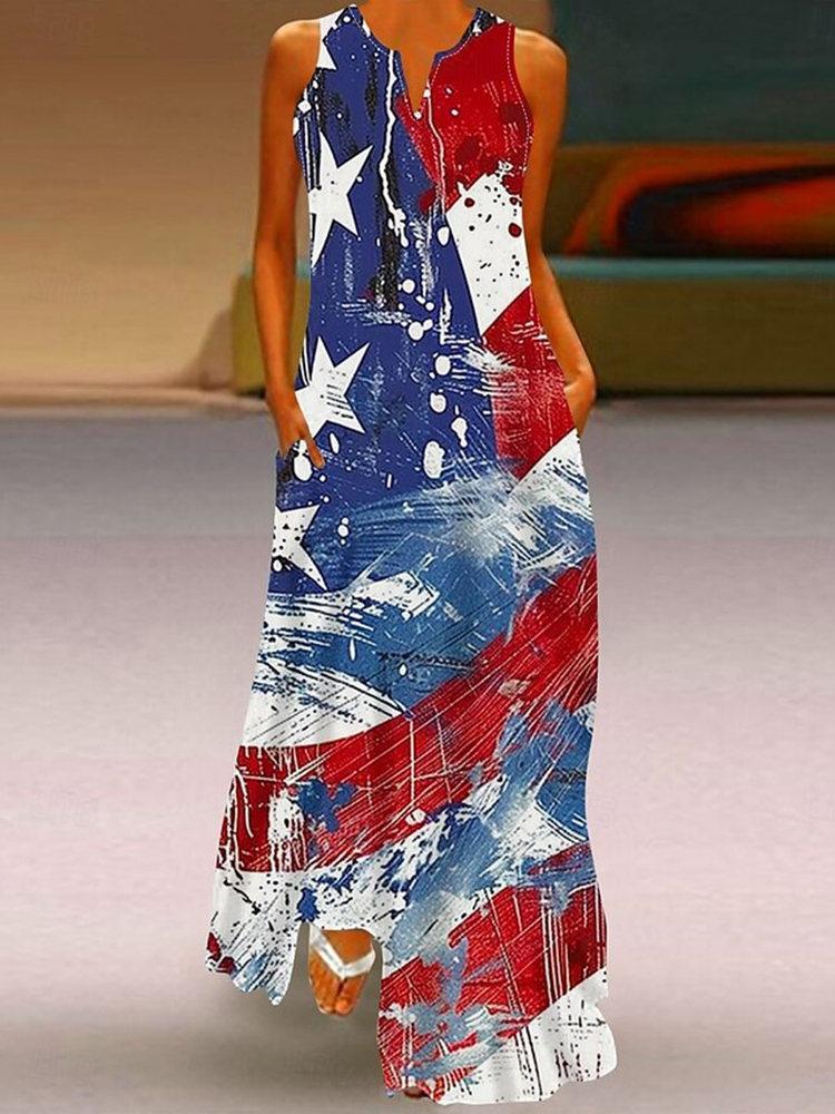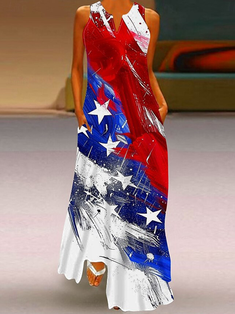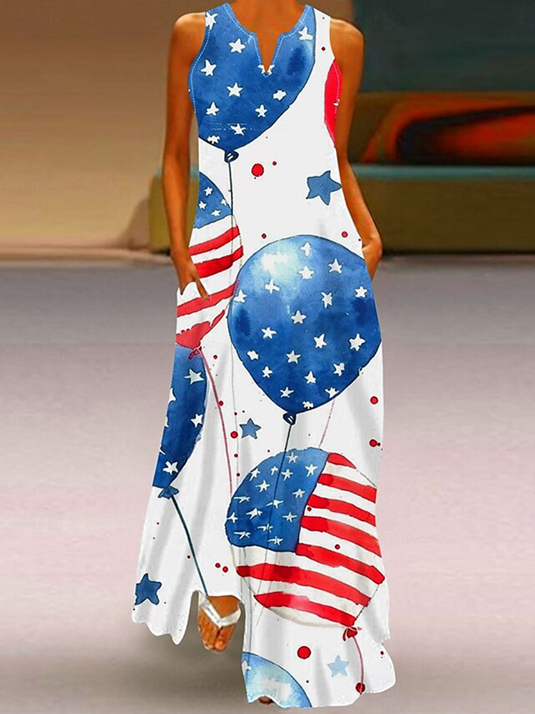Women's Casual America's 250th Anniversary V-neck Sleeveless Maxi Dress