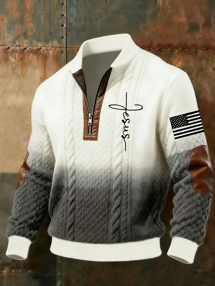 Men's Jesus Plush Stand Collar Sweatshirt