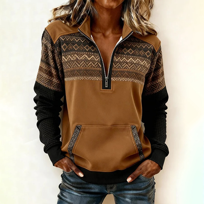 Women's Casual Half-zip Pullover Sweatshirt With Lotus Print
