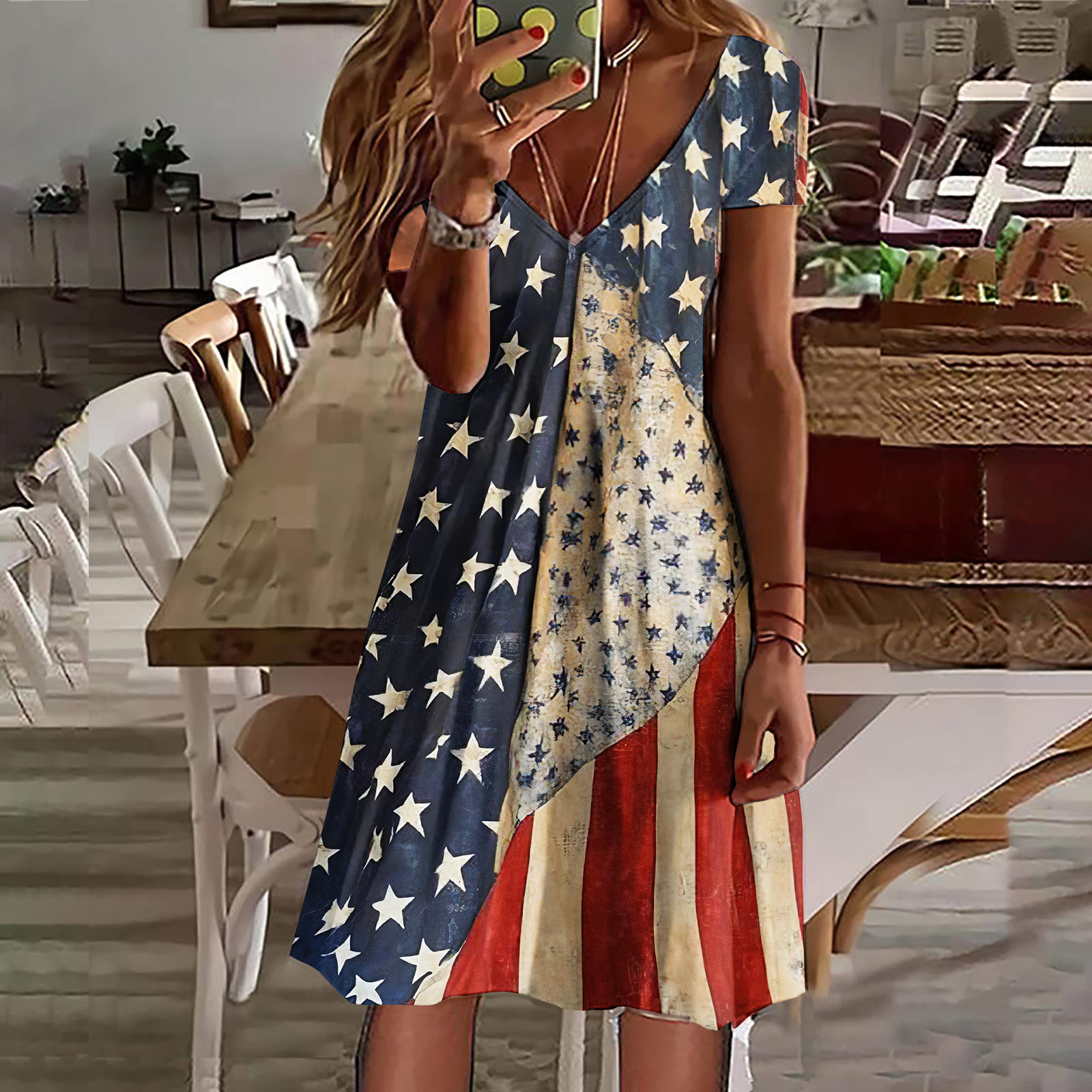 Women's Vintage Independence Day Flag Short Sleeve Dress