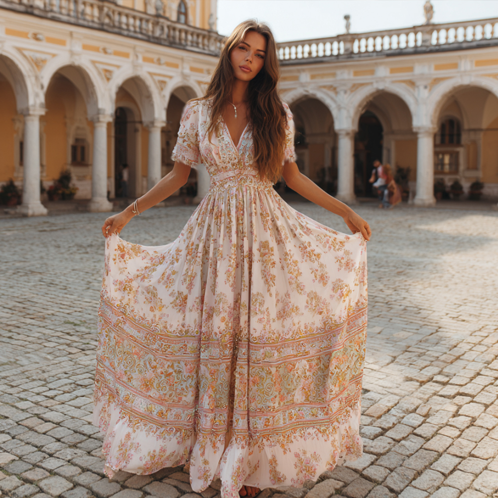 Bohème Retro Summer Floral V-neck Dress