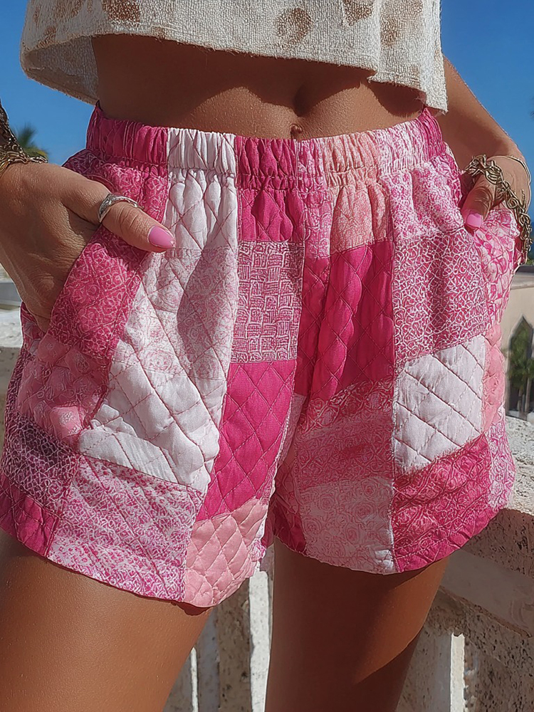 Women's Pink Geometric Patchwork Casual Shorts