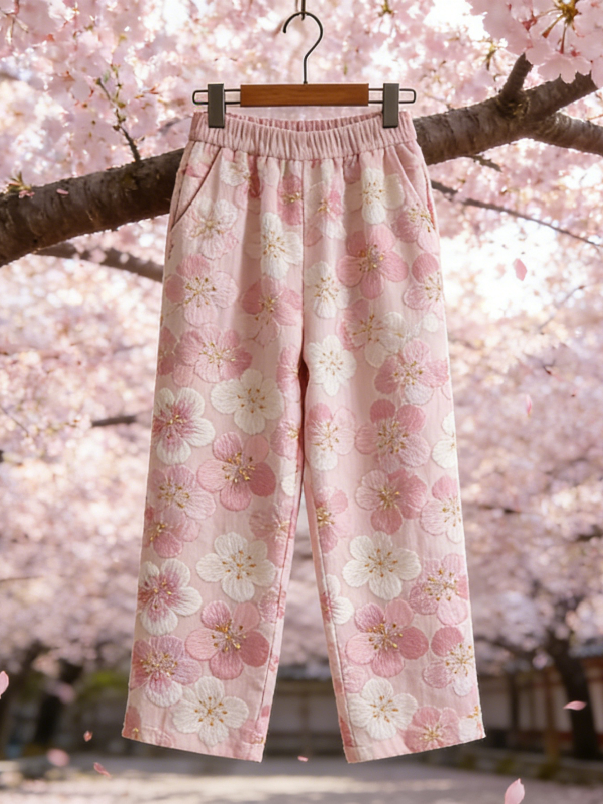 Japanese Art Retro Style Plant Flower Pattern Casual Long Pants