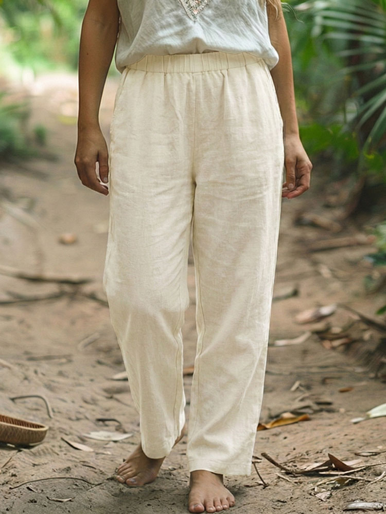 Vintage Classy Simple And Comfortable Linen Blend Casual Pants