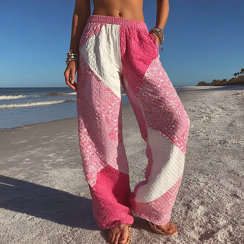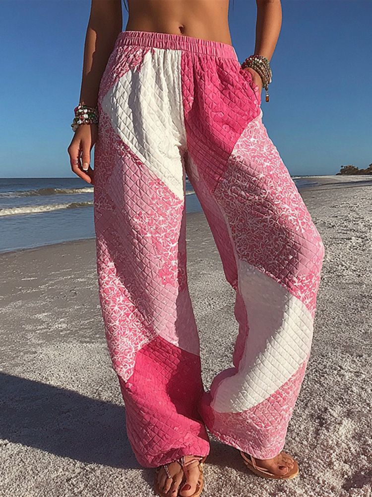 Women's Pink Geometric Patchwork Casual Pants
