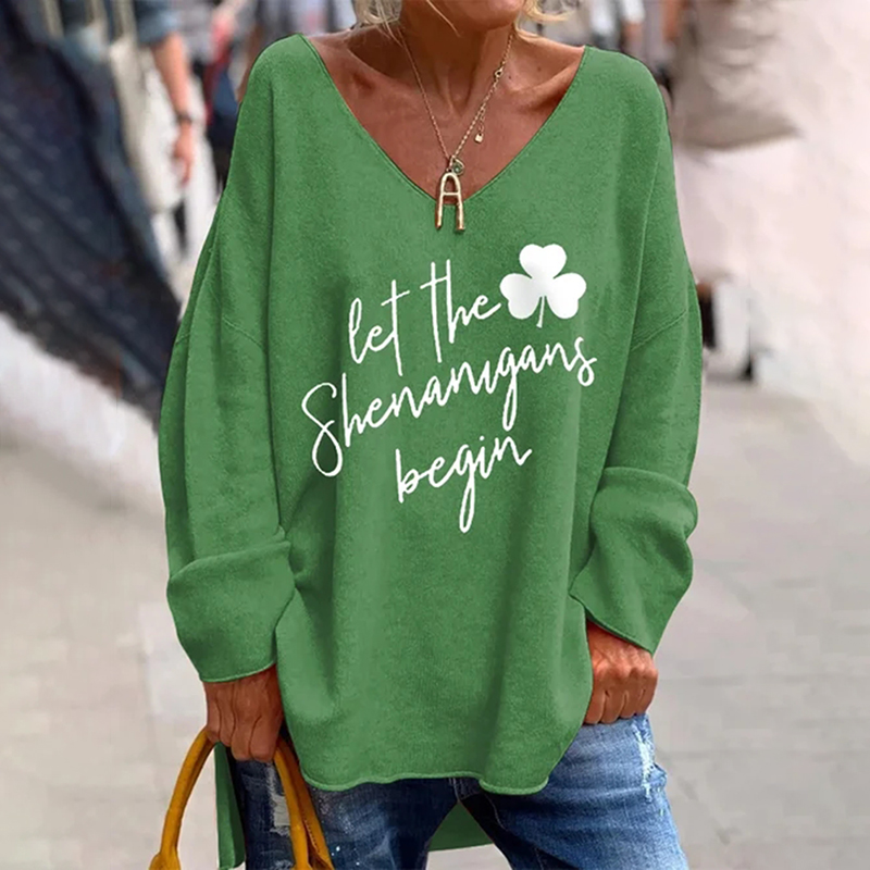 St. Patrick's Day Let The Shenanigans Begin Shamrock Casual V-Neck Top