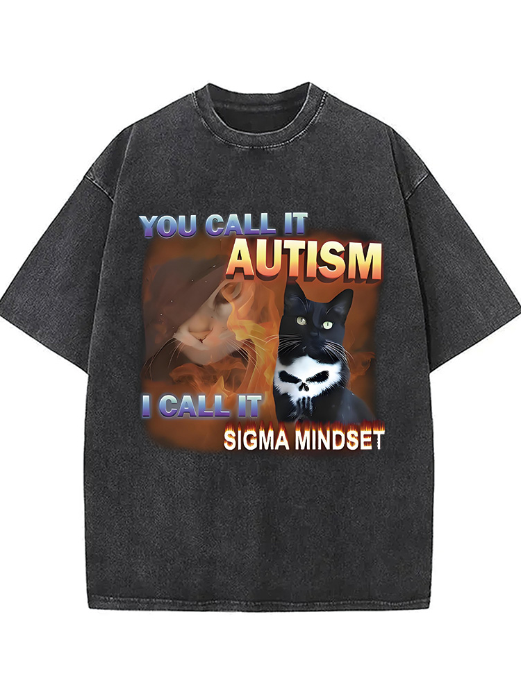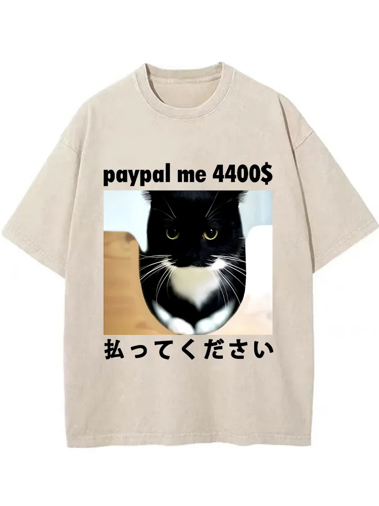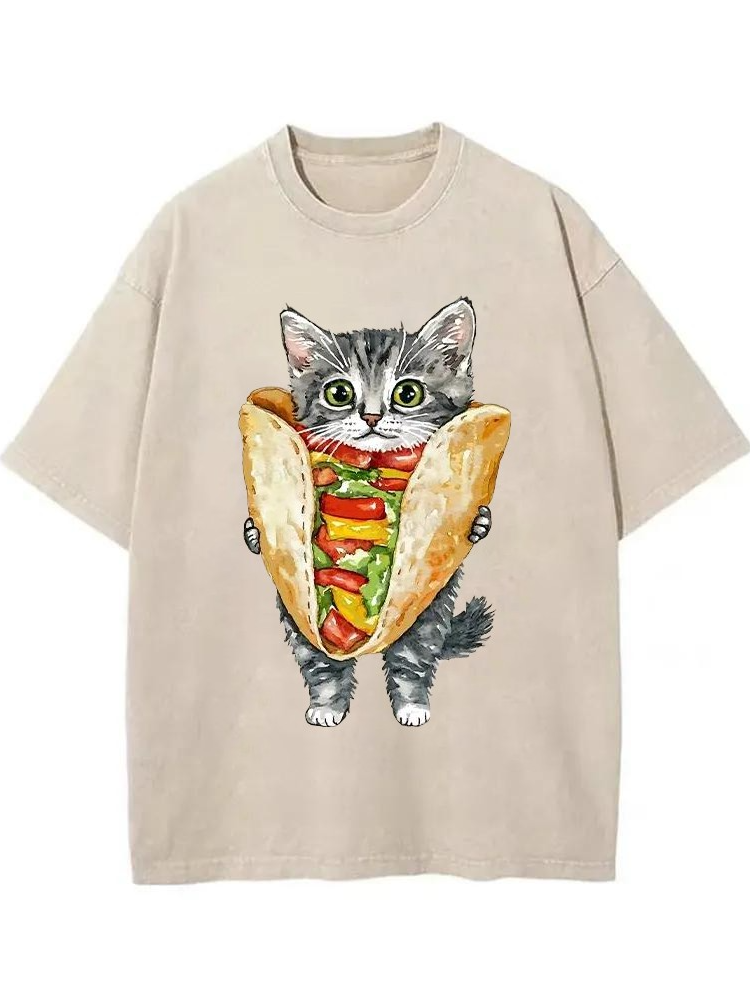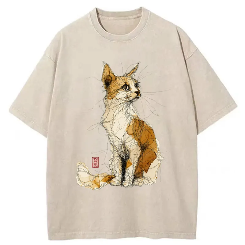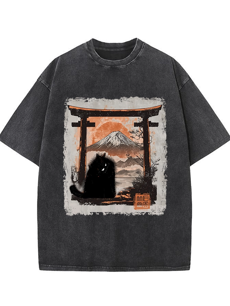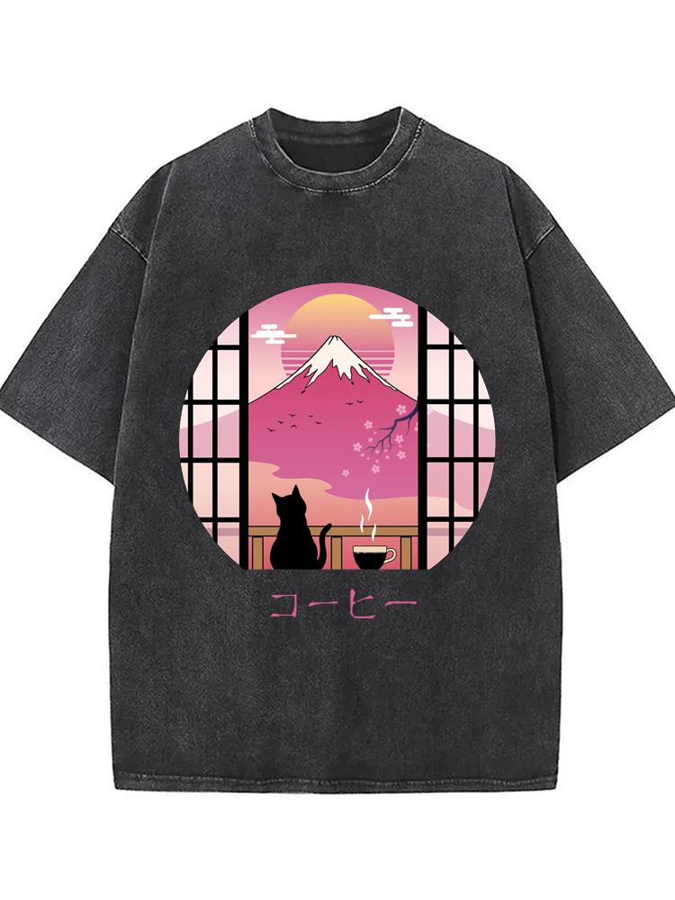 Anime Cat Bite Japanese Art Retro Washed T-shirt