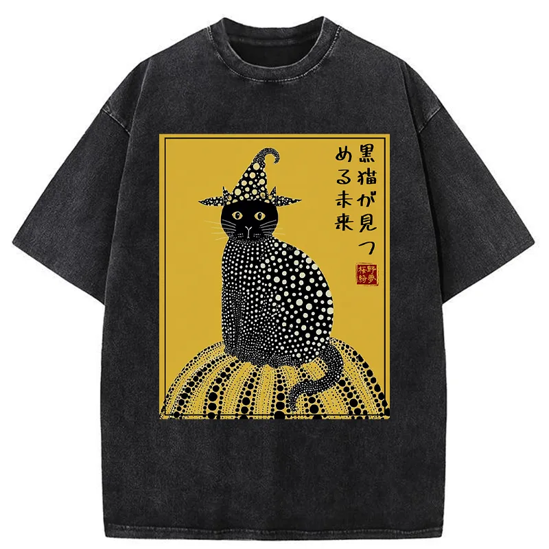 Black Cat's Glimpse Of The Future Washed T-shirt