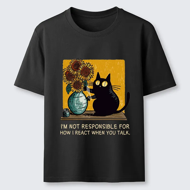 Abstract Creative Lazy Black Cat Painting Art T-Shirt