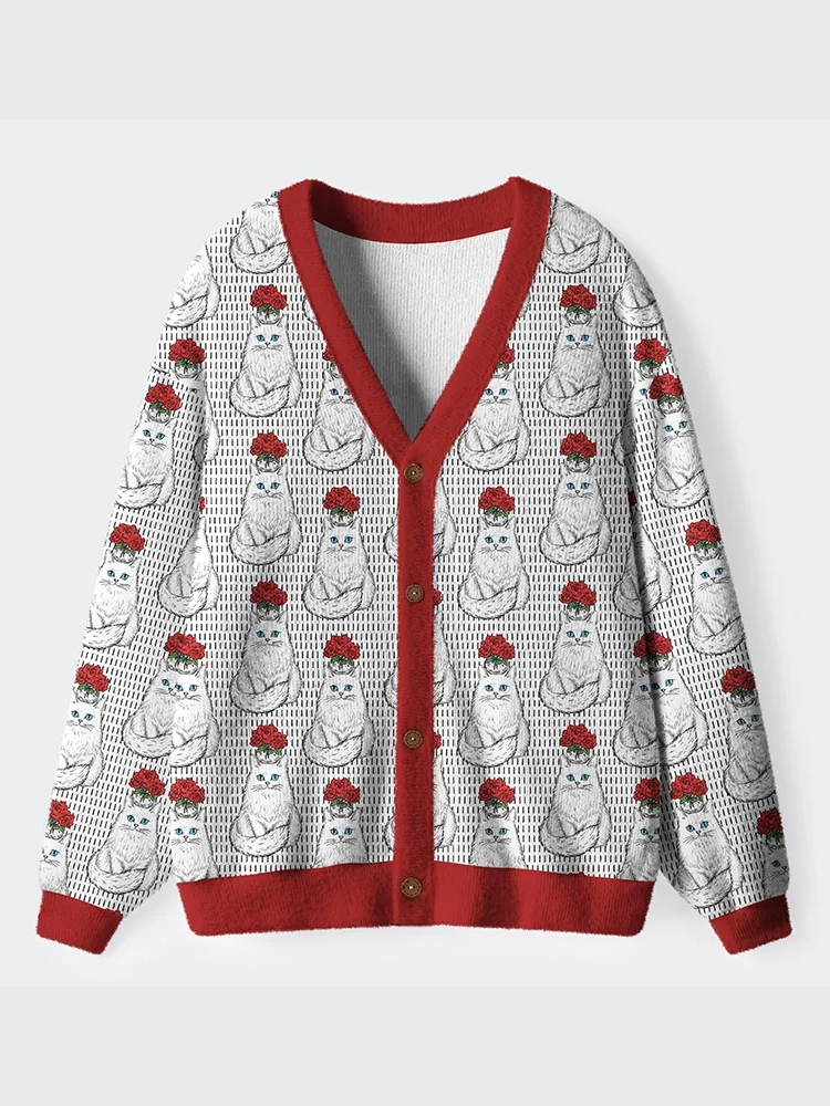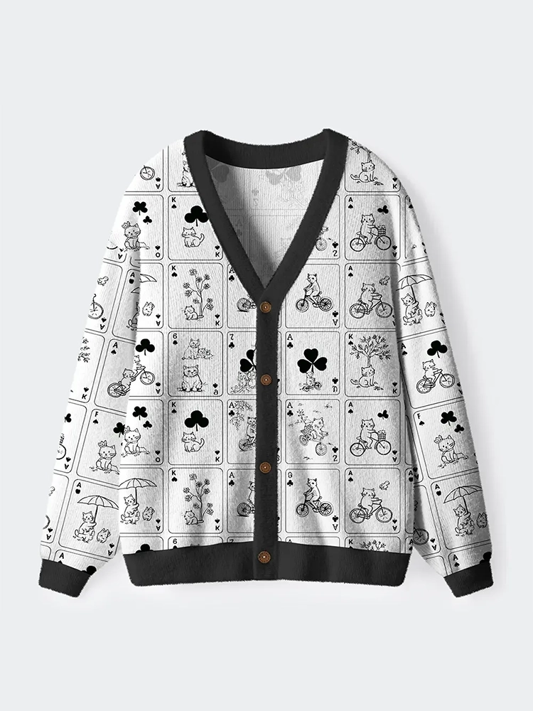 Japanese Abstract Art Cat Ugly Cardigan Sweater