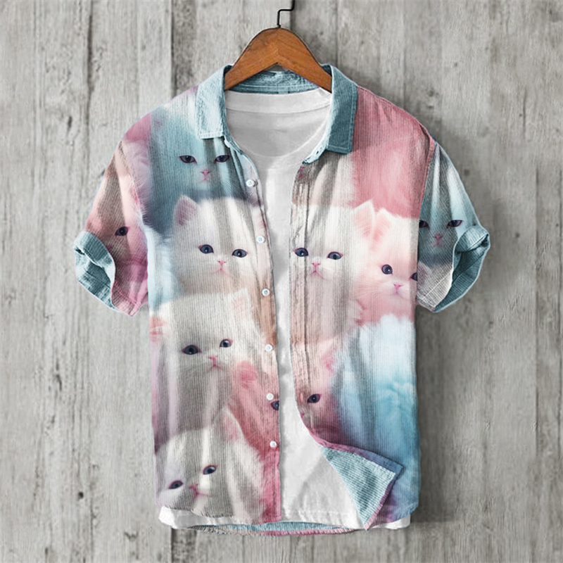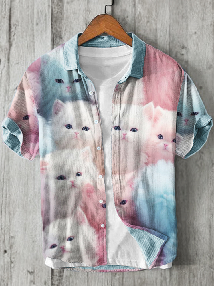 Trans Flag Color Fuzzy Cats Pattern Linen Shirt