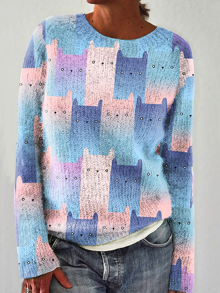 Funny Cute Cat Print Casual Knit Pullover Sweater
