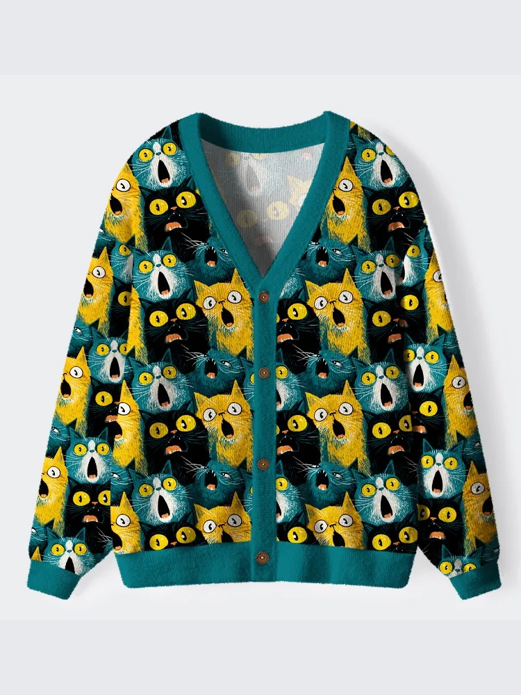 Cosmic Cat Chronicles Ugly Cardigan Sweater