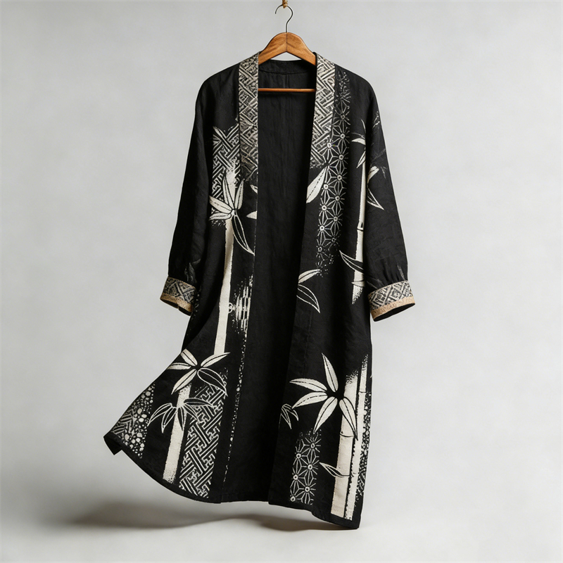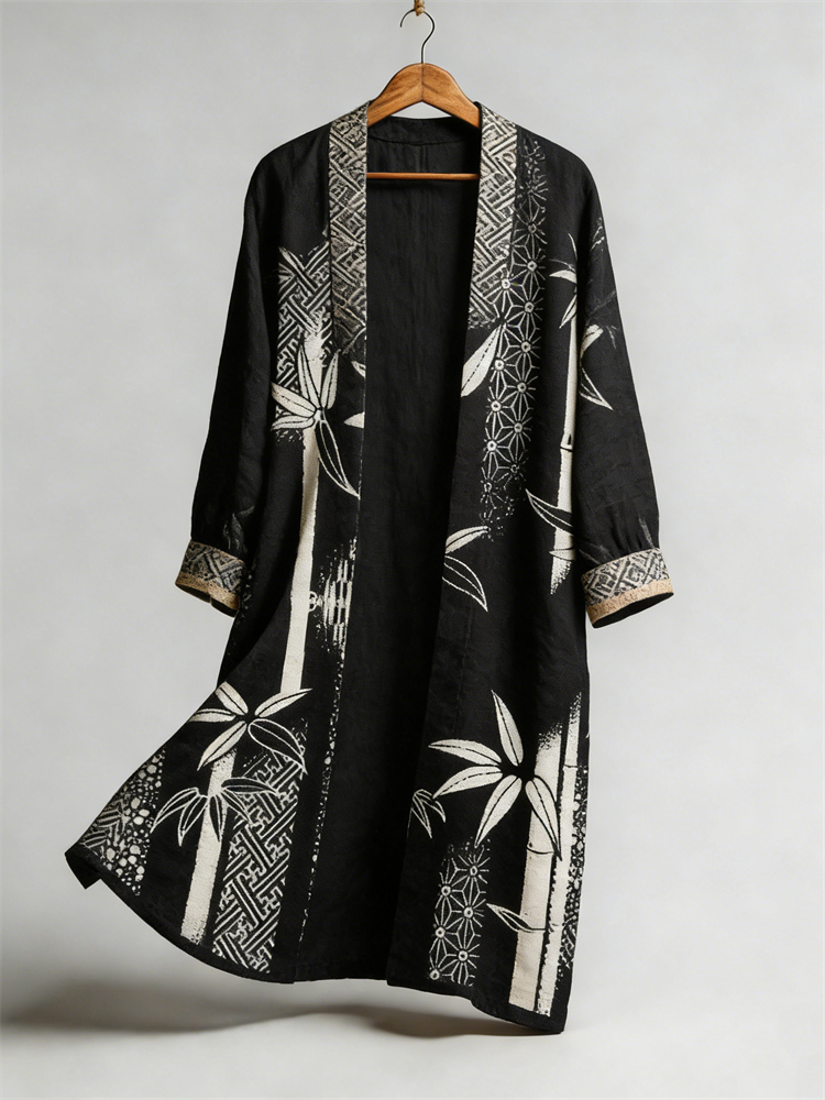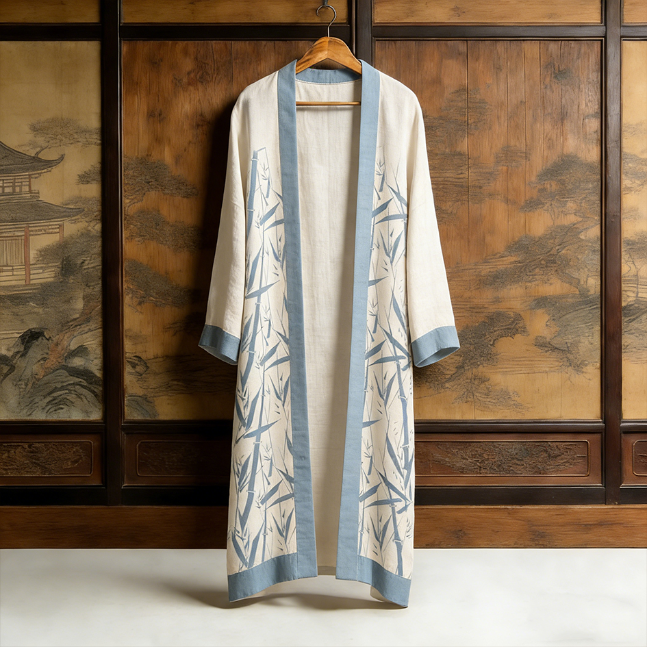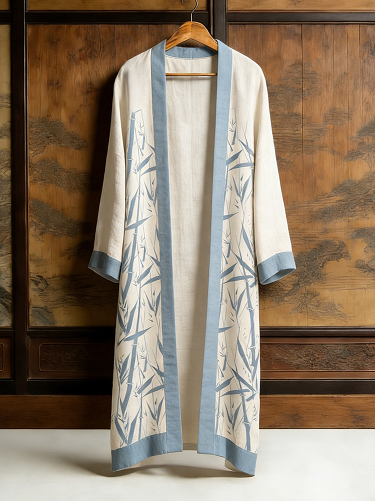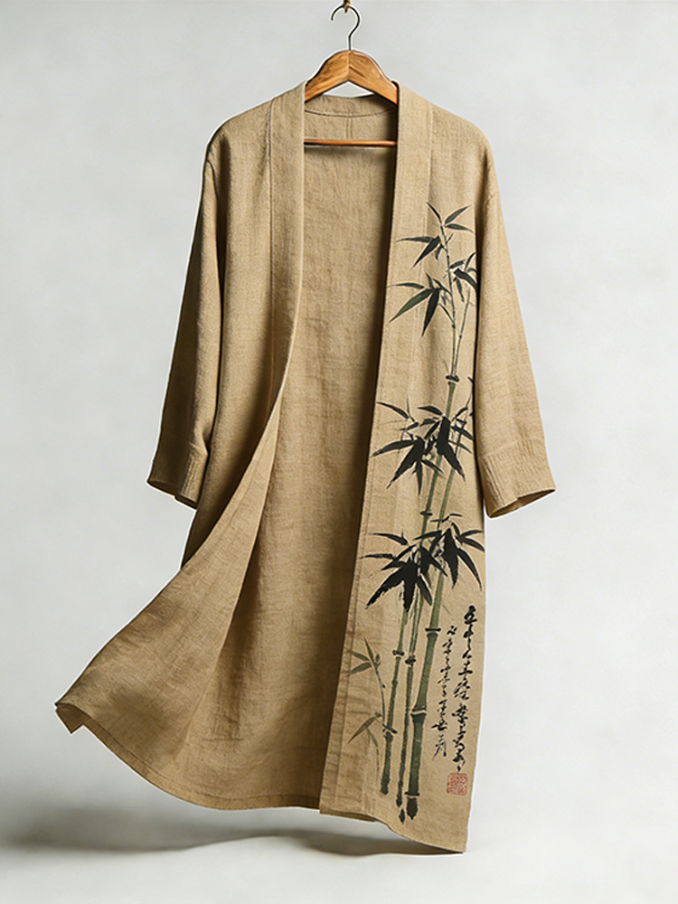 Japanese Ink Bamboo Painting Linen Flowing Linen Long Kimono