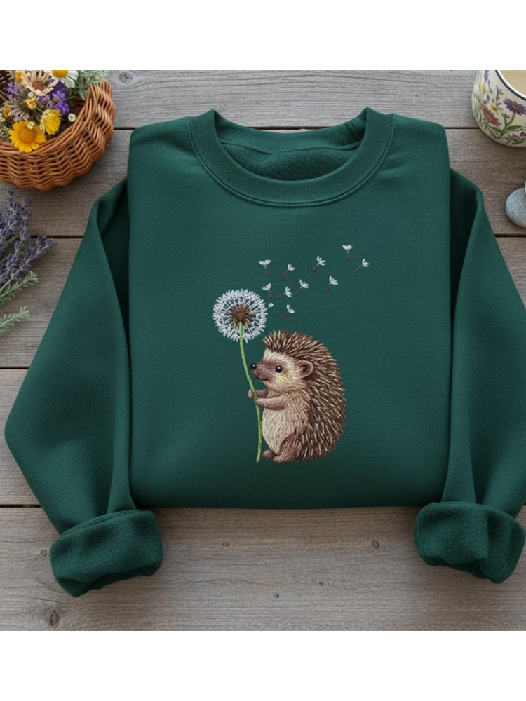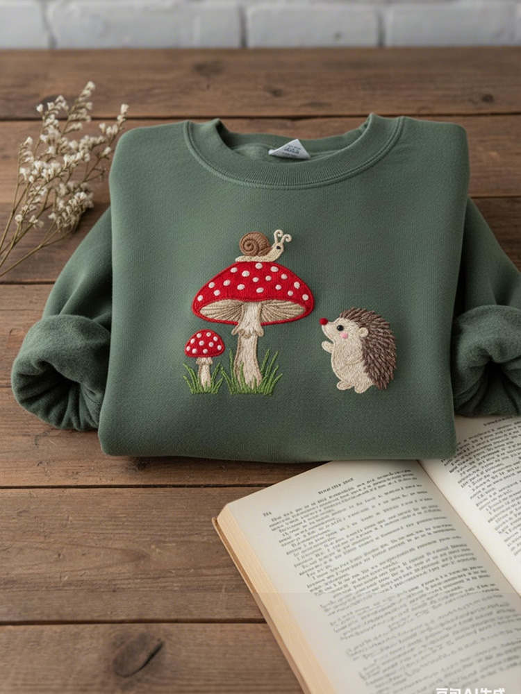 Embroidered Hedgehog Snail Mushroom Sweatshirt